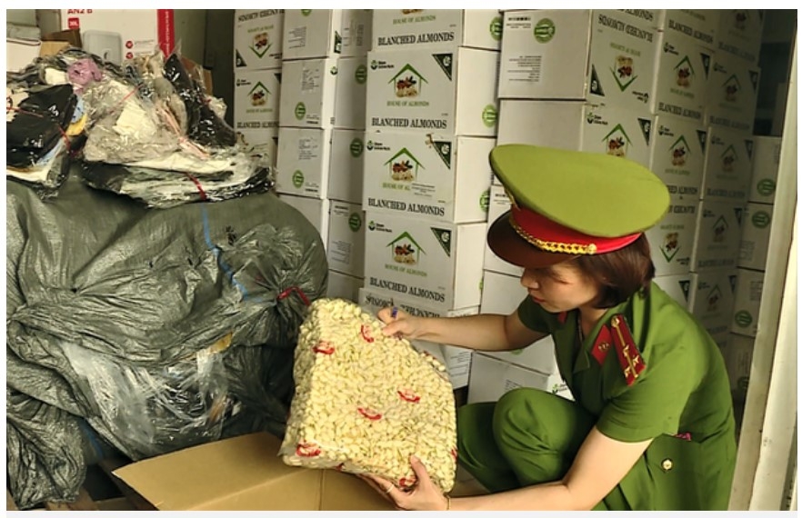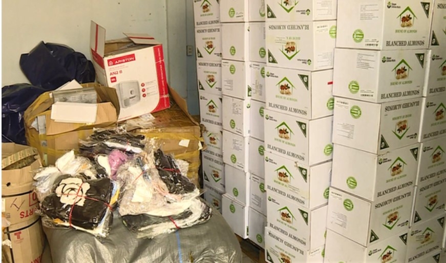 Tại đây, lực lượng chức năng đã phát hiện 150 thùng hạnh nhân (trọng lượng khoảng 1,7 tấn), 8 thùng hạt dẻ (trọng lượng khoảng 180 kg), 19 kiện hàng thiết bị vệ sinh, 20 kiện máy hút bụi,...