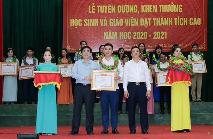 | Thầy Báu trong lễ tuyên dương học sinh và giáo viên đạt thành tích cao huyện Tương Dương. |