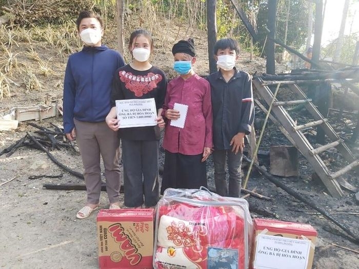 | Thầy giáo Lữ Đức Báu kêu gọi các nhà hảo tâm giúp đỡ một gia đình không may gặp hỏa hoạn ở bản Pủng Bón, xã Hữu Khuông, huyện Tương Dương. |