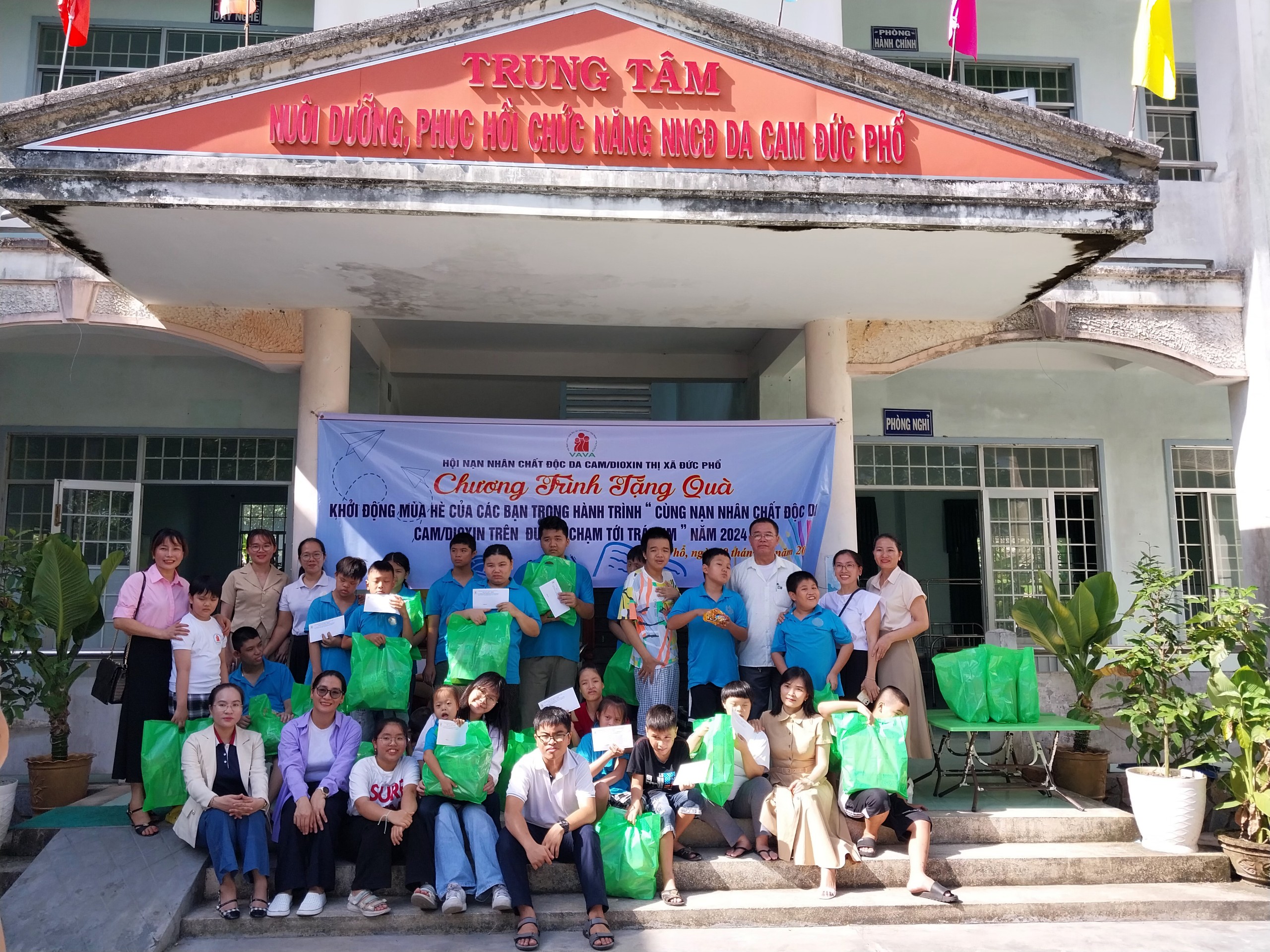Ngày 19/6/2024, Hội NNCĐDC/dioxin thị xã đã phối hợp với các em học sinh và gia đình tổ chức Chương trình tặng quà “Khởi động mùa hè cùng NNCĐDC trên đường chạm tới trái tim năm 2024”. Chương trình trao tặng 30 suất quà cho NNCĐDC ở các xã Phổ An, Phổ Phong, Phổ Cường, Phổ Minh, Phổ Khánh và các phường Nguyễn Nghiêm, Phổ Ninh, Phổ Quang, mỗi suất quà 300.000 đồng tiền mặt; hỗ trợ 22 suất quà cho các cháu khuyết tật tại Trung tâm Nuôi dưỡng phục hồi chức năng NNCĐDC Đức Phổ, mỗi suất trị giá 200.000 đồng (quà và tiền mặt); các bạn đã tổ chức giao lưu và nấu bữa cơm trưa yêu thương cho các cháu khuyết tật tại Trung tâm.