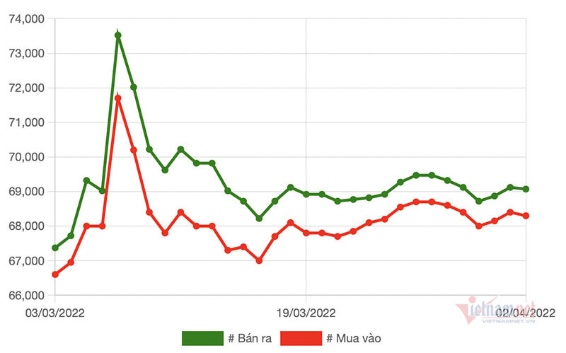 Kết thúc phiên giao dịch hôm qua, giá vàng miếng 9999 tại SJC Hà Nội là 68,3 triệu đồng/lượng (mua vào)- 69,07 triệu đồng/lượng (bán ra). SJC TP.HCM niêm yết ở mức 68,3 triệu đồng/lượng (mua vào) và 69,05 triệu đồng/lượng (bán ra).
