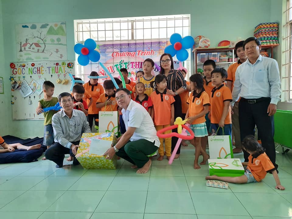- Cũng trong buổi sáng 1/6, lãnh đạo Sở Lao động Thương binh Xã hội và Quỹ bảo trợ trẻ em tỉnh đến thăm, tặng 01 thùng bánh kẹo, tiền mặt và 9 thùng sữa Vinasoy để