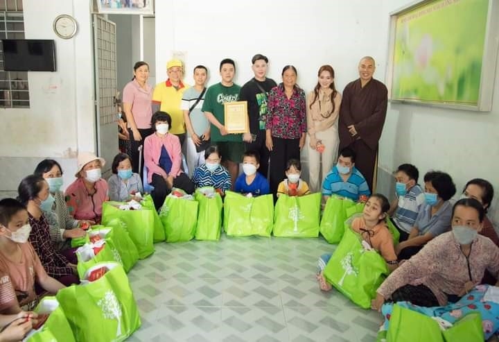 | Đại Đức Thích Minh Phú và bà Nguyễn Xuân Hương Trang cùng đoàn thăm tặng quà cho NNCĐDC tại nhà nuôi dưỡng trẻ em nhiễm chất độc hóa học |