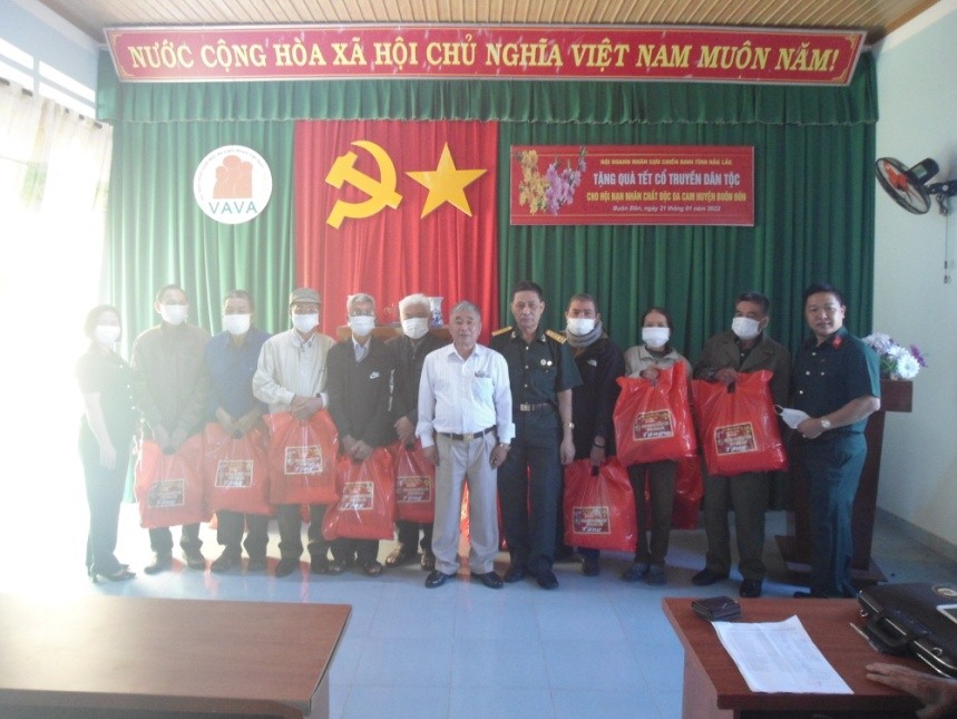 Tại buổi lễ các đồng chí Lãnh đạo của hai Hội đã trao 30 suất quà, mỗi suất quà trị giá 350 nghìn đồng. Số tiền trên do Hội Doanh nhân Cựu chiến binh tỉnh Đắk Lắk vận động hỗ trợ nạn nhân chất độc da cam nhân dịp Tết Nguyên đán Nhâm Dần 2022.