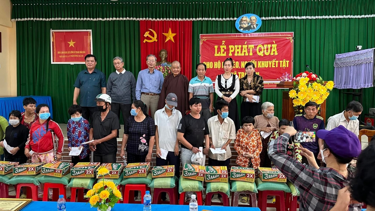 Nhằm góp phần nâng cao đời sống vật chất và tinh thần của nạn nhân chất độc da cam khi Tết đến, Xuân về, sáng 13/01/2023, Thượng tọa Thích Phước Tồn - Trụ trì Chùa Phước Châu, phường 2, TP Vĩnh Long, Phó Chủ tịch không chuyên trách Hội Nạn nhân chất độc da cam/dioxin - Người khuyết tật và Bảo trợ xã hội tỉnh đã tổ chức chương trình tặng 300 phần quà cho người nghèo, người khuyết tật và nạn nhân chất độc da cam ở 2 xã Trà Côn và Nhơn Bình (huyện Trà Ôn).