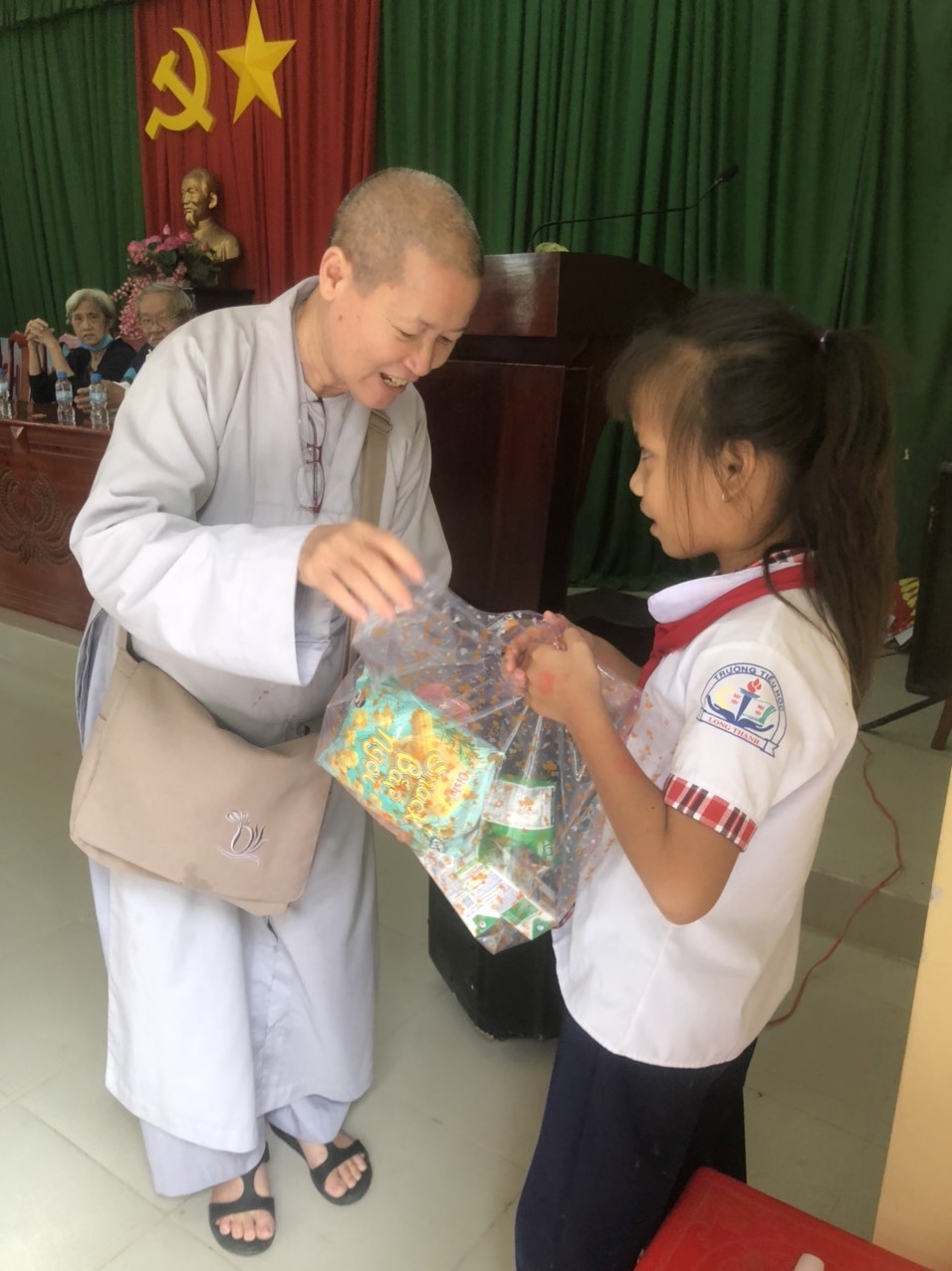 | Đoàn từ thiện của Sư cô Phúc Đức tặng quà tại xã Long Thạnh |