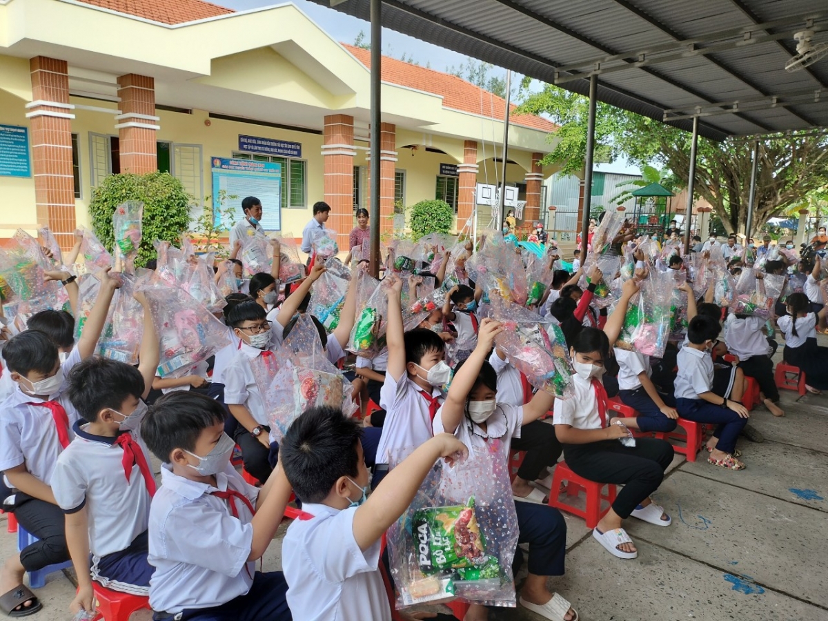| Học sinh Tiểu học xã Tân Long nhận quà Tết Trung thu |