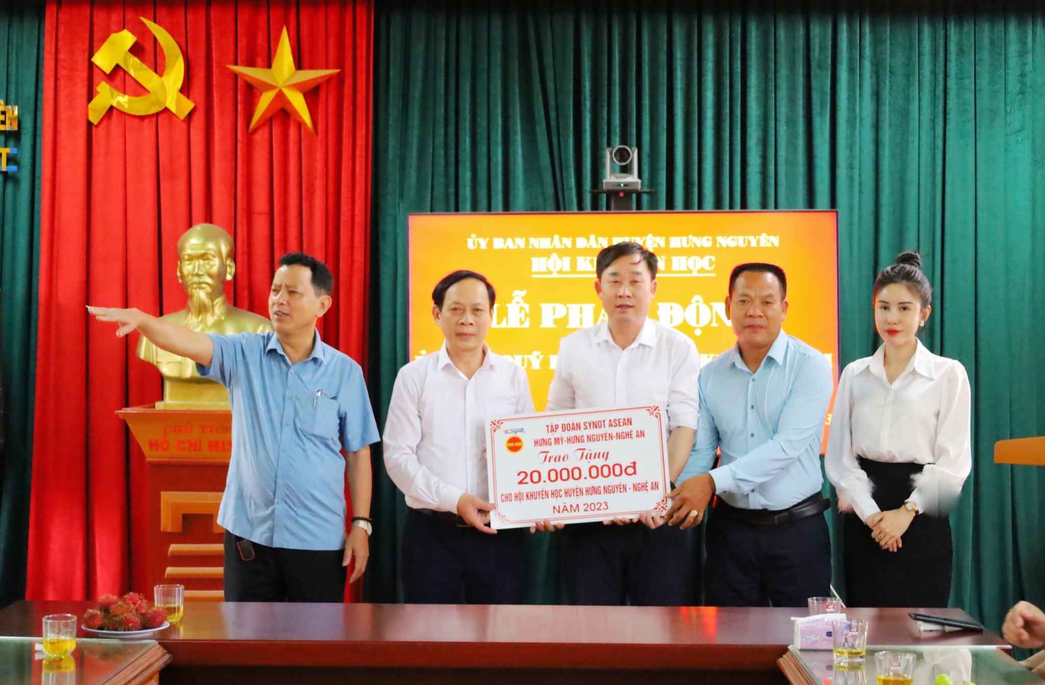Năm nào Tập đoàn Synot Asean cũng trao quà cho Hội Khuyến học huyện Hưng Nguyên và trước đó cũng đã trao 50 triệu đồng.