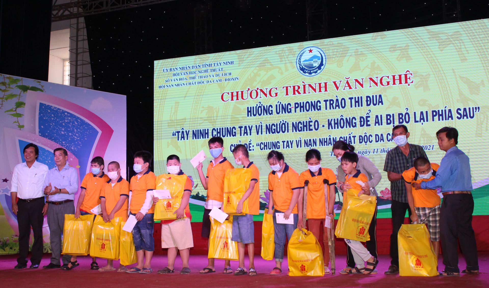 Tham dự có ông Nguyễn Thanh Phong, Tỉnh ủy viên, Phó Chủ tịch HĐND tỉnh; đại diện Lãnh đạo các sở, ngành, đoàn thể tỉnh, các tổ chức Hội quần chúng, đơn vị lực lượng vũ trang, đoàn viên thanh niên, nạn nhân, gia đình có NNCĐDC, cùng sự góp mặt của lực lượng văn nghệ sĩ, doanh nghiệp, mạnh thường quân. Tại chương trình, Ban tổ chức đã trao tặng 45 phần quà cho các NNCĐDC đang được nuôi dưỡng tại Trung tâm nuôi dưỡng và phục hồi chức năng của Tỉnh hội và Thị xã Hòa Thành, mỗi phần quà bằng tiền mặt là 700 ngàn đồng.