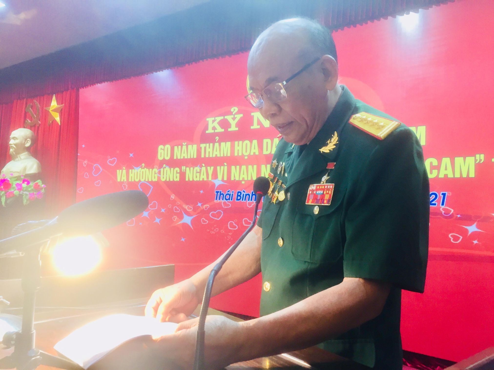 Lễ Kỷ niệm 60 năm “Thảm họa da cam Việt Nam” được tổ chức gọn, đảm bảo giãn cách trong phòng chống dịch Covid - 19 theo đúng chỉ đạo của Chính phủ và Thủ tướng Chính phủ. Tỉnh Thái Bình có trên 3 vạn người là nạn nhân bị nhiễm và phơi nhiễm chất độc da cam sau chiến tranh, trong đó đã có trên 2 vạn người đang được hưởng chế độ trợ cấp NNCĐDC. Để chung tay xoa dịu nỗi đau da cam, tỉnh Thái Bình đã chủ động trong các hoạt động đền ơn, đáp nghĩa; sau gần 17 năm thành lập Hội NNCĐDC/dioxin, tỉnh đã kết nối cộng đồng ủng hộ hàng trăm tỷ đồng, giúp xây dựng được 400 nhà tình nghĩa tặng cho NNCĐDC, tặng quà cho trên 300 ngàn lượt hội viên, tặng hàng chục sổ tiết kiệm tình nghĩa, tổ chức dạy nghề cho hơn 500 nạn nhân và tạo việc làm thường xuyên cho 15 con em NNCĐDC. Xây dựng Trung tâm Tẩy độc và thực hành tẩy độc cho trên 3.000 cựu chiến binh bị nhiễm CĐDC.