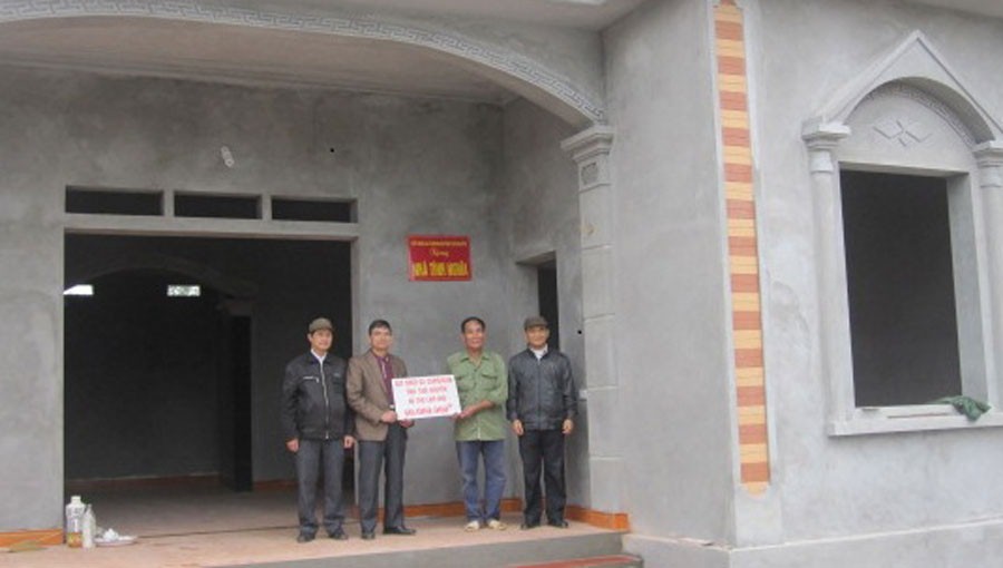 Ông Hoàng Đức, Chủ tịch Hội Nạn nhân chất độc da cam/dioxin tỉnh Thái Nguyên trao nhà tình nghĩa cho cựu chiến binh Đinh Văn Mực, xóm Đầm, xã Bình Thành (Định Hóa).