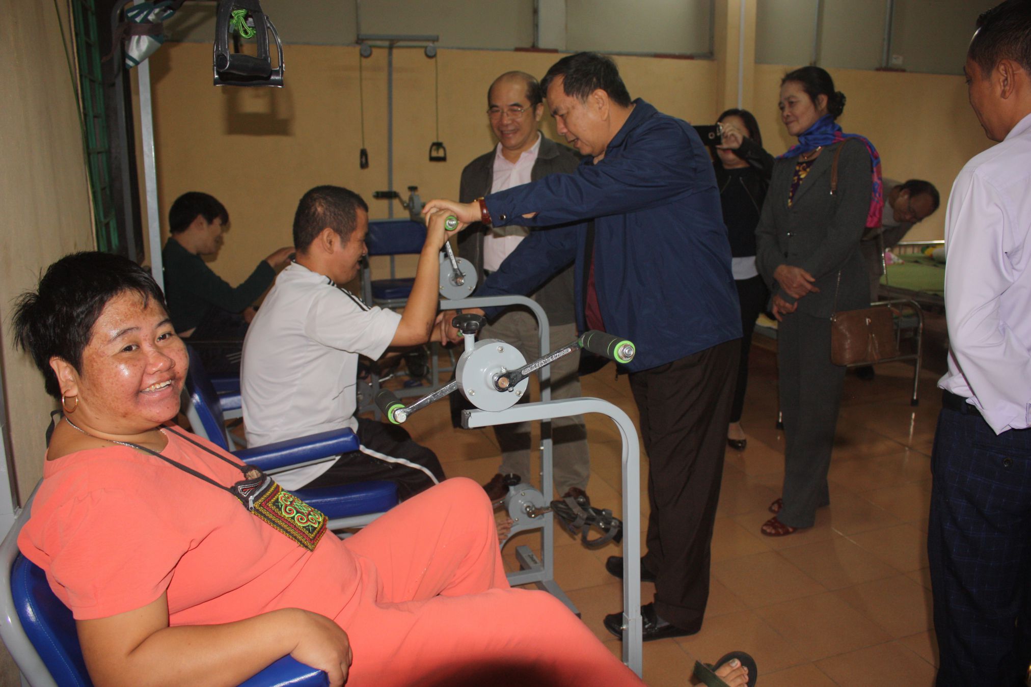 Ông Nguyễn Văn Khanh thăm bệnh nhân tại phòng phục hồi chức năng