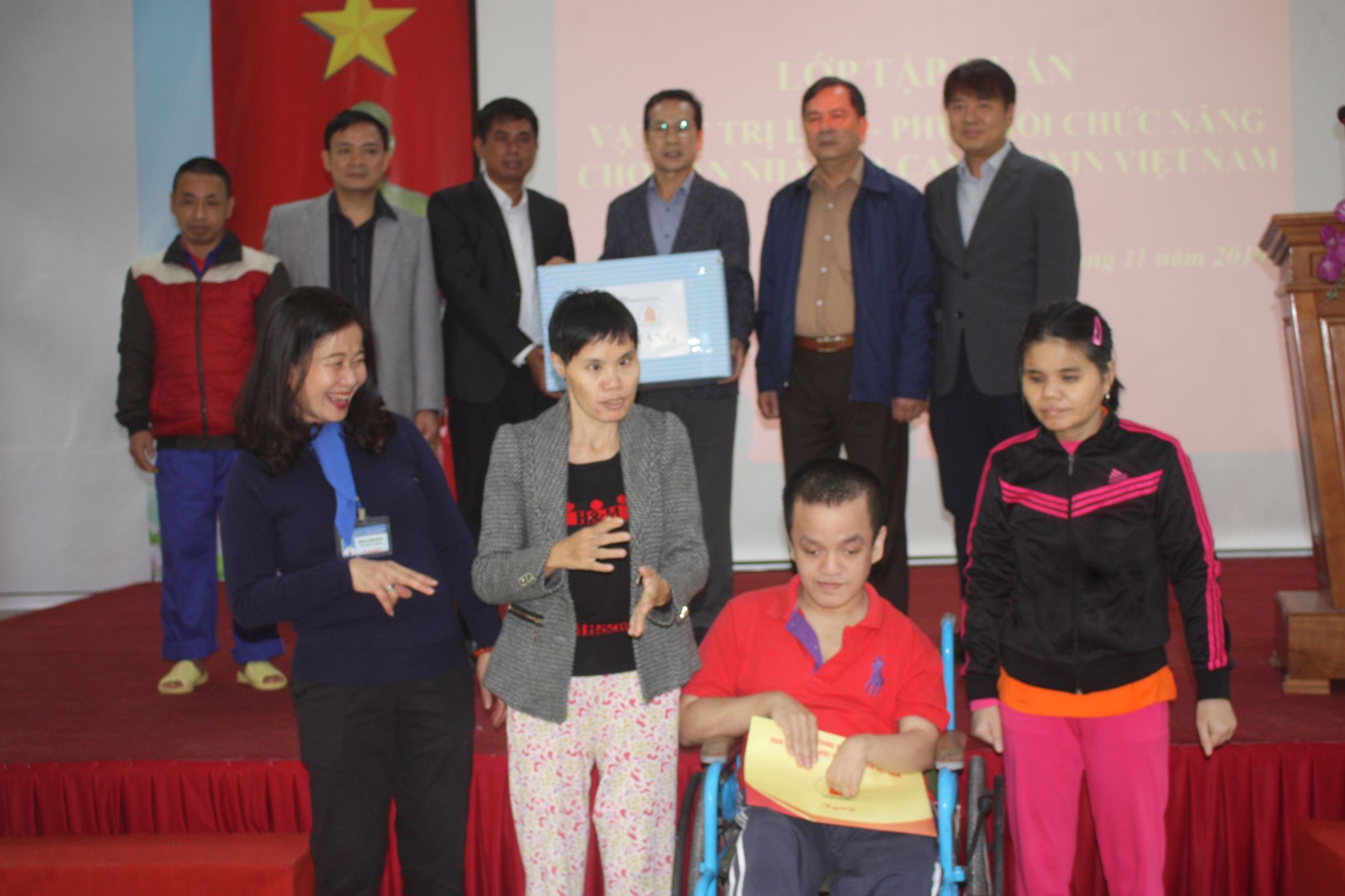 Thực hiện chương trình làm việc lớp Tập huấn vật lý trị liệu, phục hồi chức năng (VLTL&PHCN) cho NNCĐDC/dioxin Việt Nam. Sáng 14/11/2019, ông Nguyễn Văn Khanh, Phó Chủ tịch Trung ương Hội NNCĐDC/dioxin Việt Nam, ông Jong Hyun Lee, Chủ tịch Qũy DK Kim, đoàn bác sỹ, giảng viên Trường Đại học Hanyang (Hàn Quốc) và học viên lớp tập huấn đã thăm và tặng quà Trung tâm Chăm sóc, nuôi dưỡng, điều trị (CS,ND&ĐT) nạn nhân bị nhiễm CĐDC/dioxin Hà Nội.