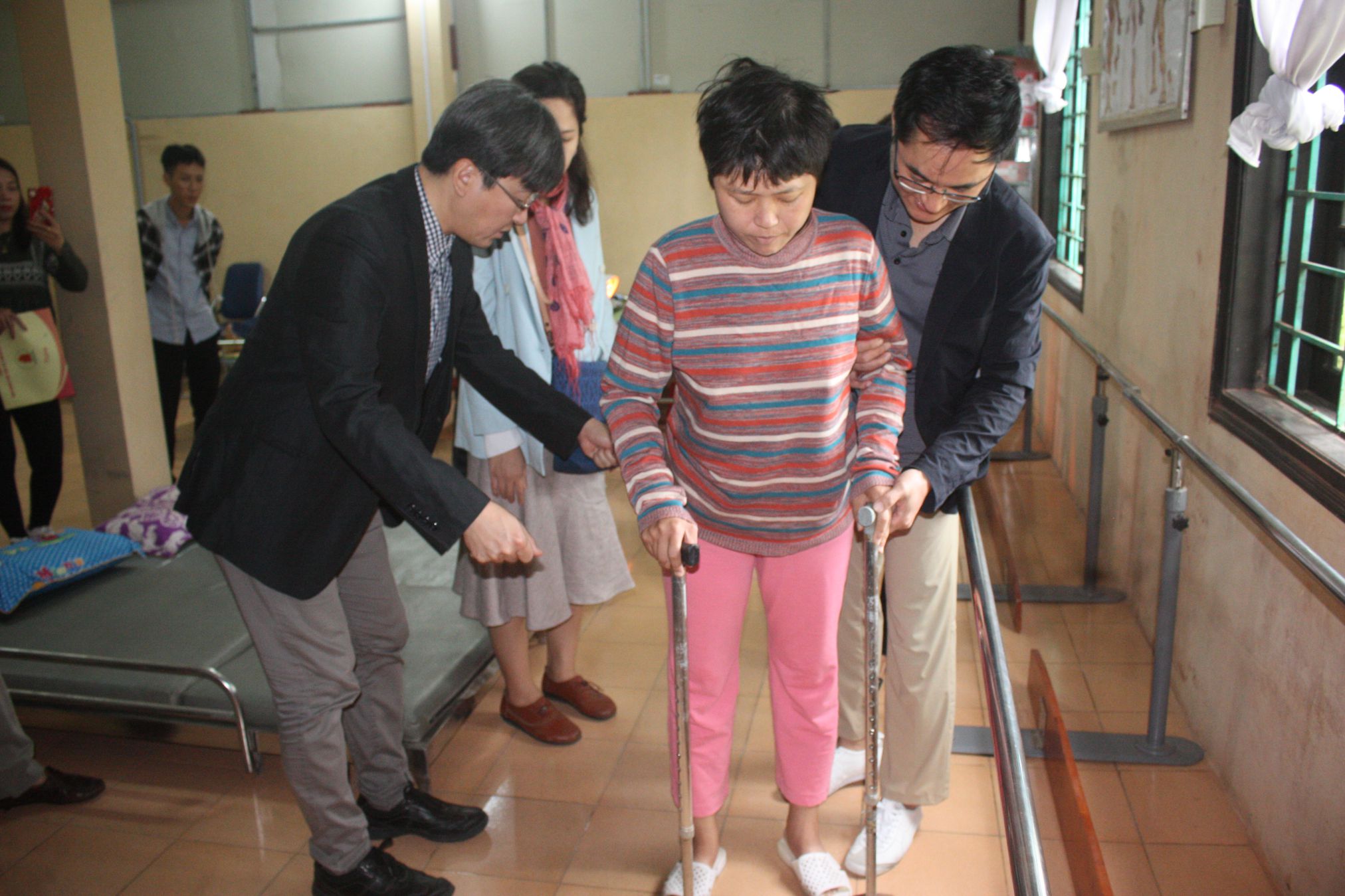 Bác sĩ trường Đại học Hanyang hướng dẫn nạn nhân luyện tập tại phòng phục hồi chức năng
