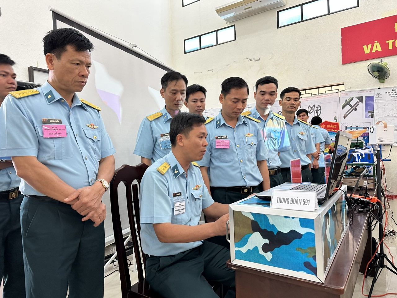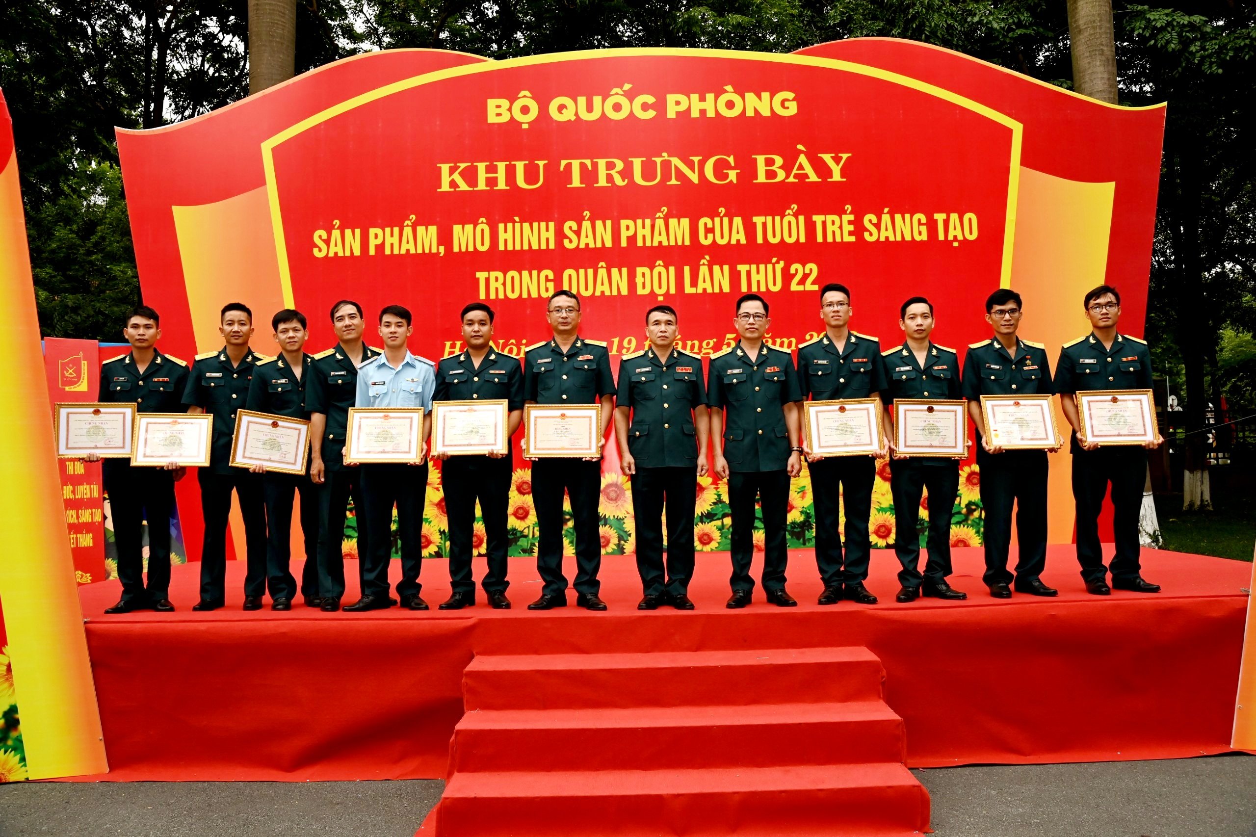 Đoàn cán bộ Sư đoàn 377 đạt giải cao trong tham gia Giải thưởng Tuổi trẻ sáng tạo trong quân đội lần thứ 22 chụp ảnh lưu niệm với thủ trưởng Cục Chính trị Quân chủng PH-K