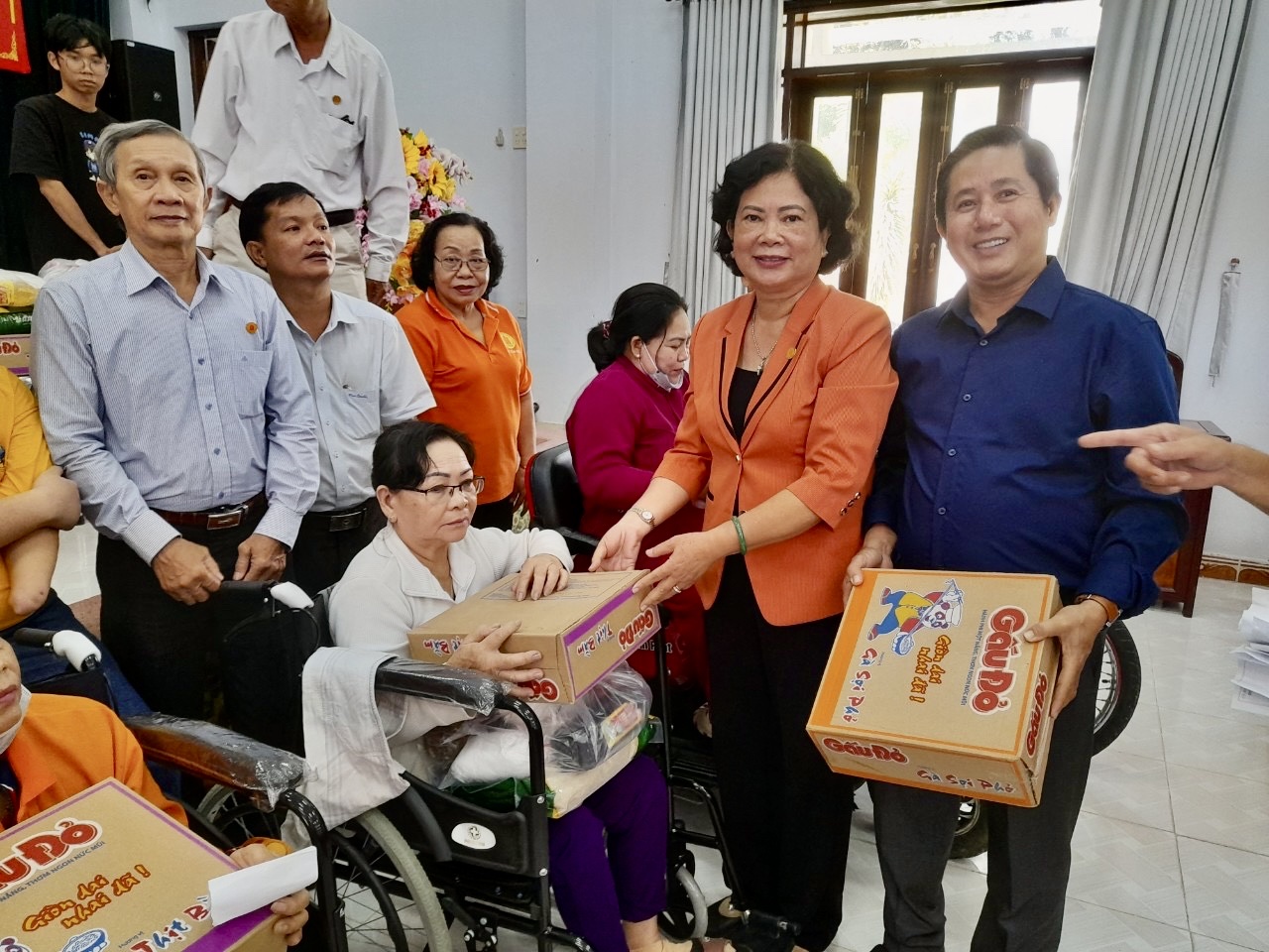 Chủ tịch Thành hội và Nhà tài trợ trao tặng quà cho NNCĐDC tại gia đình