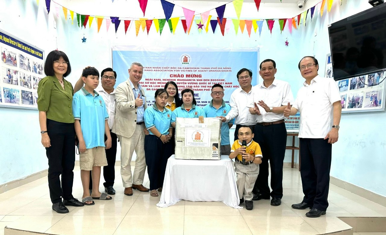 Ông Đỗ Hồng Lâm, Phó Chủ tịch Trung ươn g Hội và Đại sứ Đặc mệnh toàn quyền Vương quốc Bỉ tại Việt Nam, Ngài Karl Hendrik Margareta Van Den Bossche thăm, tặng qùa cho NNCĐDC tại Đà Nẵng