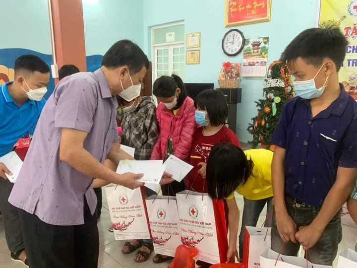 Đại tá Tô Năm, Ủy viên Thường vụ Trung ương Hội, Chủ tịch Hội NNCĐDC/dioxin thành phố Đà Nẵng tặng quà Tết 2022 cho NNCĐDC