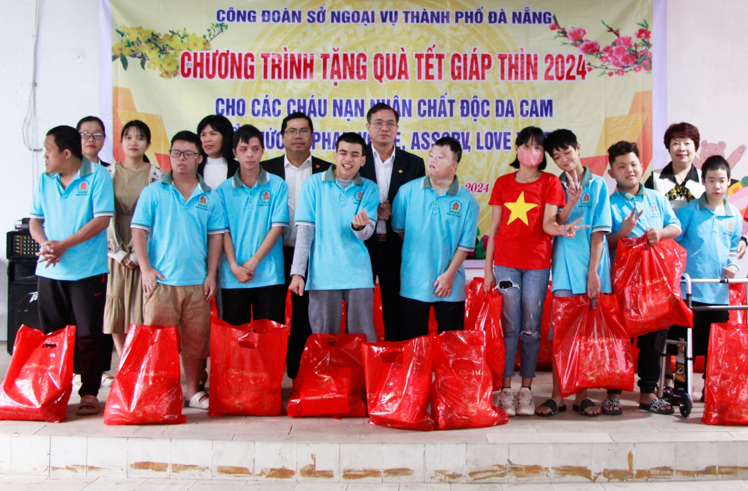 Mỗi suất quà gồm: gạo, dầu ăn, nước mắn, đường trắng, hạt dưa, mứt gừng và các nhu yếu phẩm khác, tổng trị giá của 100 phần quà là 45 triệu đồng. Những phần quà này do Công đoàn Sở Ngoại Vụ TP Đà Nẵng vận động tổ chức ASSORV (Pháp); tổ chức ORPHAN VOICE và Tổ chức LOVE (Hoa Kỳ) hỗ trợ, giúp cho nạn nhân chất độc da cam có thêm điều kiện vui xuân đón tết đầm ấm đủ đầy. Được biết hằng năm, Công đoàn Sở Ngoại vụ thành phố thường xuyên vận động các tổ chức nước ngoài tại Đà Nẵng hỗ trợ giúp đỡ cho nạn nhân chất độc da cam rất thiết thực, hiệu quả.