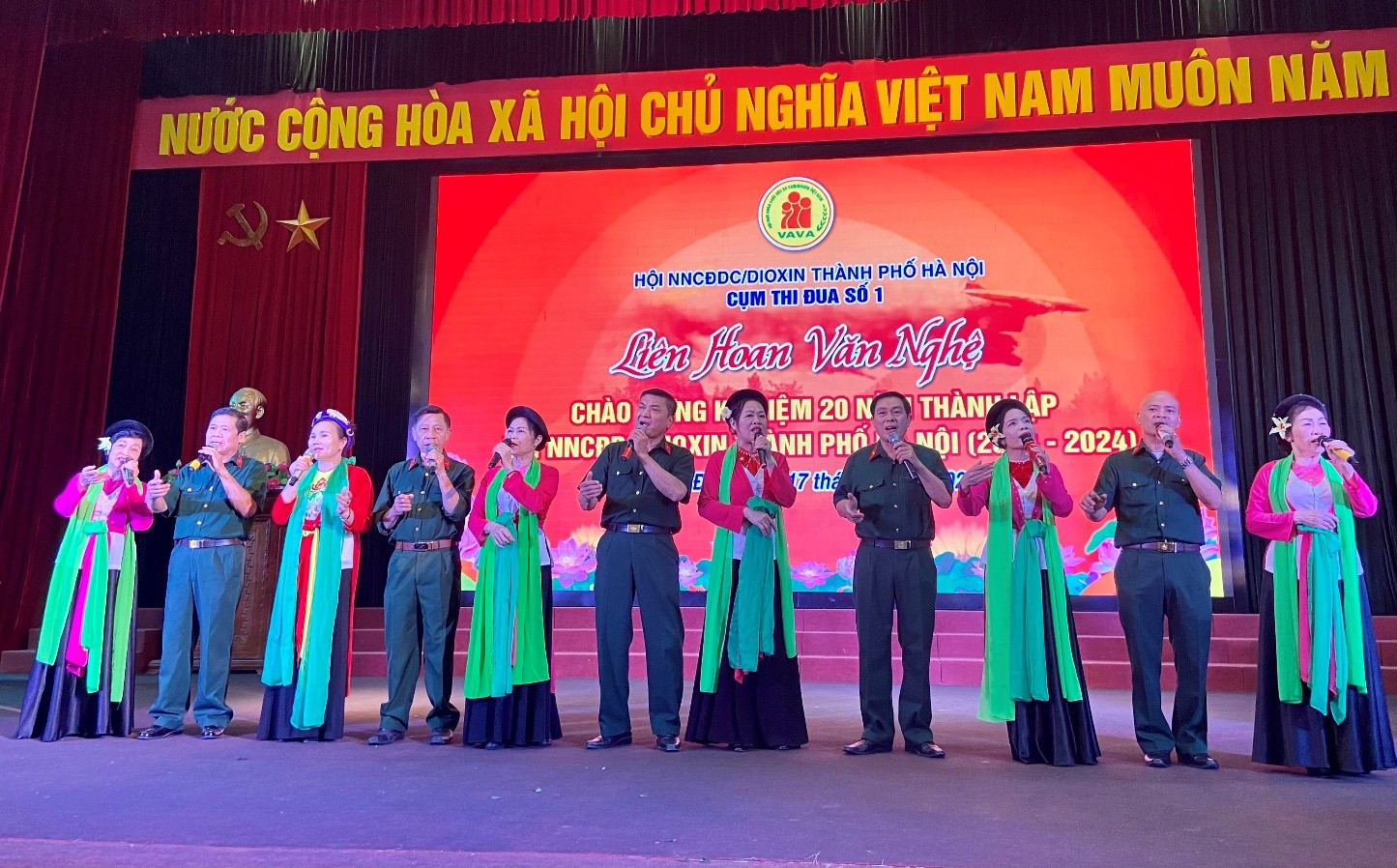 Với chủ đề: Ca ngợi Đảng, Bác Hồ, gương sáng nạn nhân vượt khó vươn lên, tấm gương tiêu biểu của các đơn vị các nhà hảo tâm đã đồng hành trong chăm sóc nạn nhân. Thể loại tham gia liên hoan gồm: Ca múa, nhạc, tiểu phẩm, hài kịch…Diễn viên là cán bộ, hội viên thuộc các quận, huyện, thị xã. Mỗi quận, huyện, thị xã được đăng ký 2 tiết mục tham gia liên hoan. Liên hoan quy tụ 9 đơn vị với 18 tiết mục ở 2 thể loại hát và múa, nội dung phong phú nhưng bám sát chủ đề. Các tiết mục được dàn dựng công phu, sáng tạo. Nhiều tiết mục thể hiện rõ tư duy sáng tạo, say mê của đạo diễn, diễn viên đang là cán bộ, hội viên. Chỉ trong thời gian ngắn nhưng Liên hoan Văn nghệ Cụm thi đua số 1 đã trở thành ngày hội ý nghĩa, nơi cán bộ, hội viên, nạn nhân giao lưu, sẻ chia, thắt chặt tình đoàn kết, hướng tới mục đích lớn nhất là truyền tải tới cộng đồng những khát vọng về cuộc sống tốt đẹp, những tình cảm chan chứa yêu thương của những người một thời hiến thân cho Tổ quốc nay đang vật lộn với “nỗi đau da cam” để sống và vươn lên.