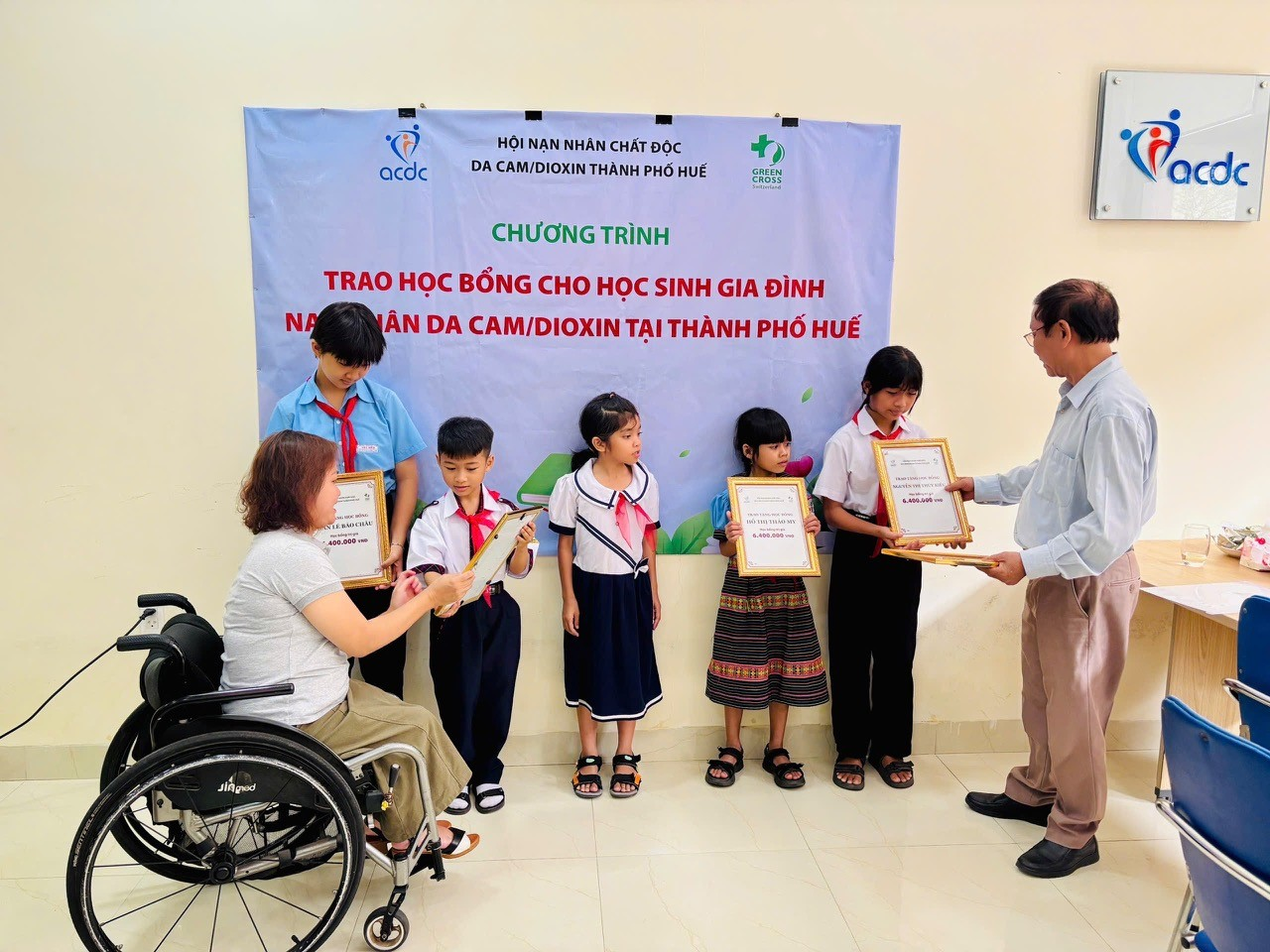 Ngày 17/4/2026, Hội Nạn nhân chất độc da cam/dioxin thành phố Huế phối hợp với Viện Nghiên cứu và Phát triển cộng đồng (ACDC) tại Huế tổ chức trao 5 suất học bổng cho 5 em là con, cháu nạn nhân chất độc da cam có hoàn cảnh khó khăn.