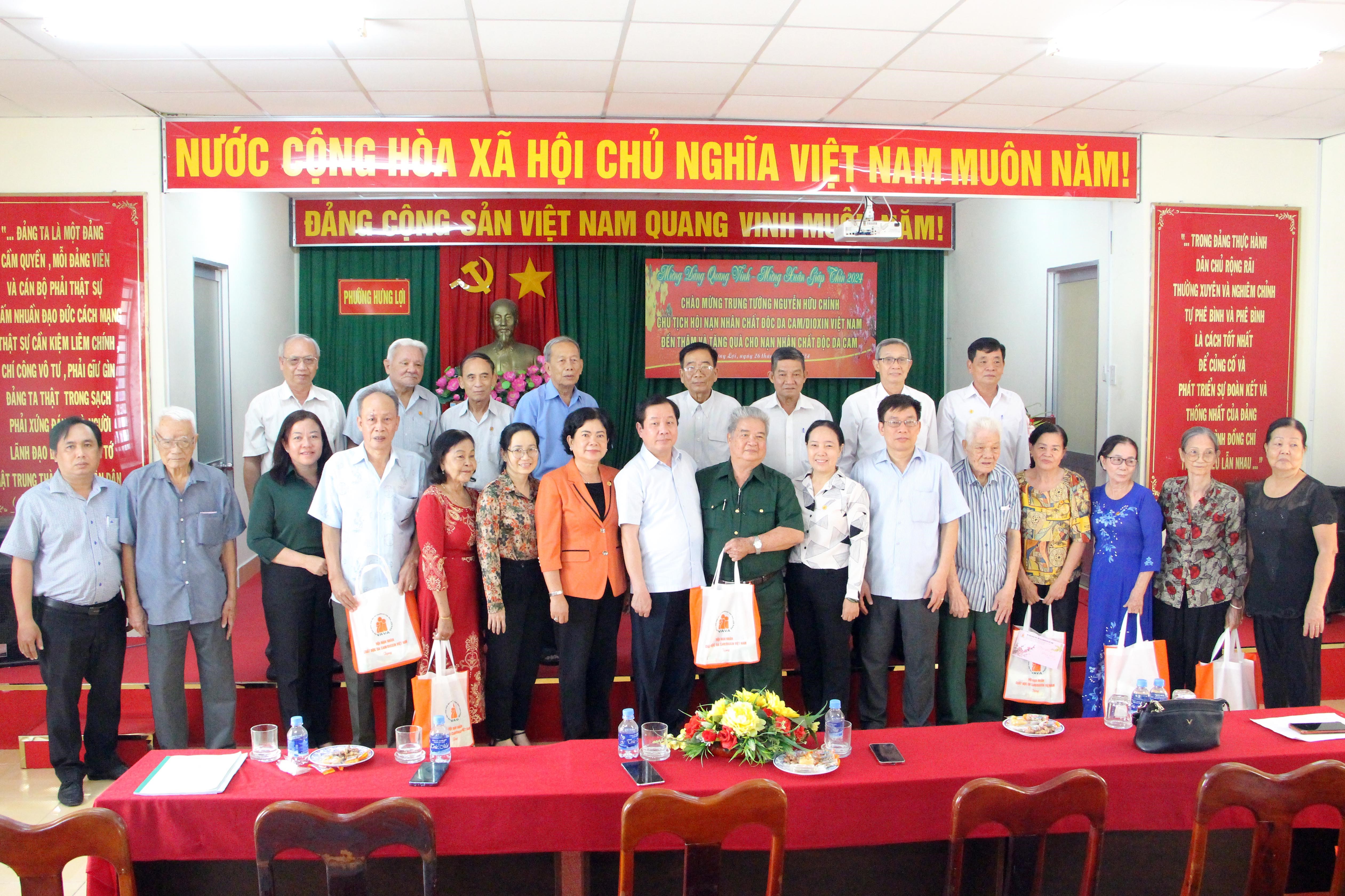Ngày 26/01/2024 Ban Thường vụ Thành hội tổ chức họp mặt và đón tiếp đồng chí Trung tướng Nguyễn Hữu Chính, Chủ tịch Hội NNCĐDC/dioxin Việt Nam vào thăm và tặng 40 suất quà cho nạn nhân chất độc da cam tại phường Hưng Lợi, quận Ninh Kiều; Trung tâm Công tác xã hội, nơi đang nuôi 64 nạn nhân chất độc da cam; đến thăm trực tiếp 2 gia đình nạn nhân tiêu biểu. Thành hội tổ chức Họp mặt “Xuân nghĩa tình năm 2024” có 90 đại biểu dự và tổ chức Đoàn dự họp mặt tại 12 điểm của các quận, huyện và tặng quà cho 606 nạn nhân chất độc da cam, với kinh phí 387.500.000đ, từ nguồn vận động 25 tổ chức và cá nhân hỗ trợ giúp đỡ. Tổ chức 171 cuộc họp mặt và tổ chức Đoàn thăm 1.085 nạn nhân bệnh, tật nặng tại hộ gia đình, thăm và chúc Tết các đồng chí nguyên là lãnh đạo Hội thành phố, nhiều Hội cơ sở đã phối hợp Hội Chữ thập đỏ tổ chức Xuân nhân ái “Chợ 0 đồng” tặng quà cho nạn nhân chất độc da cam, người nghèo và các Hội viên có hoàn cảnh khó khăn.