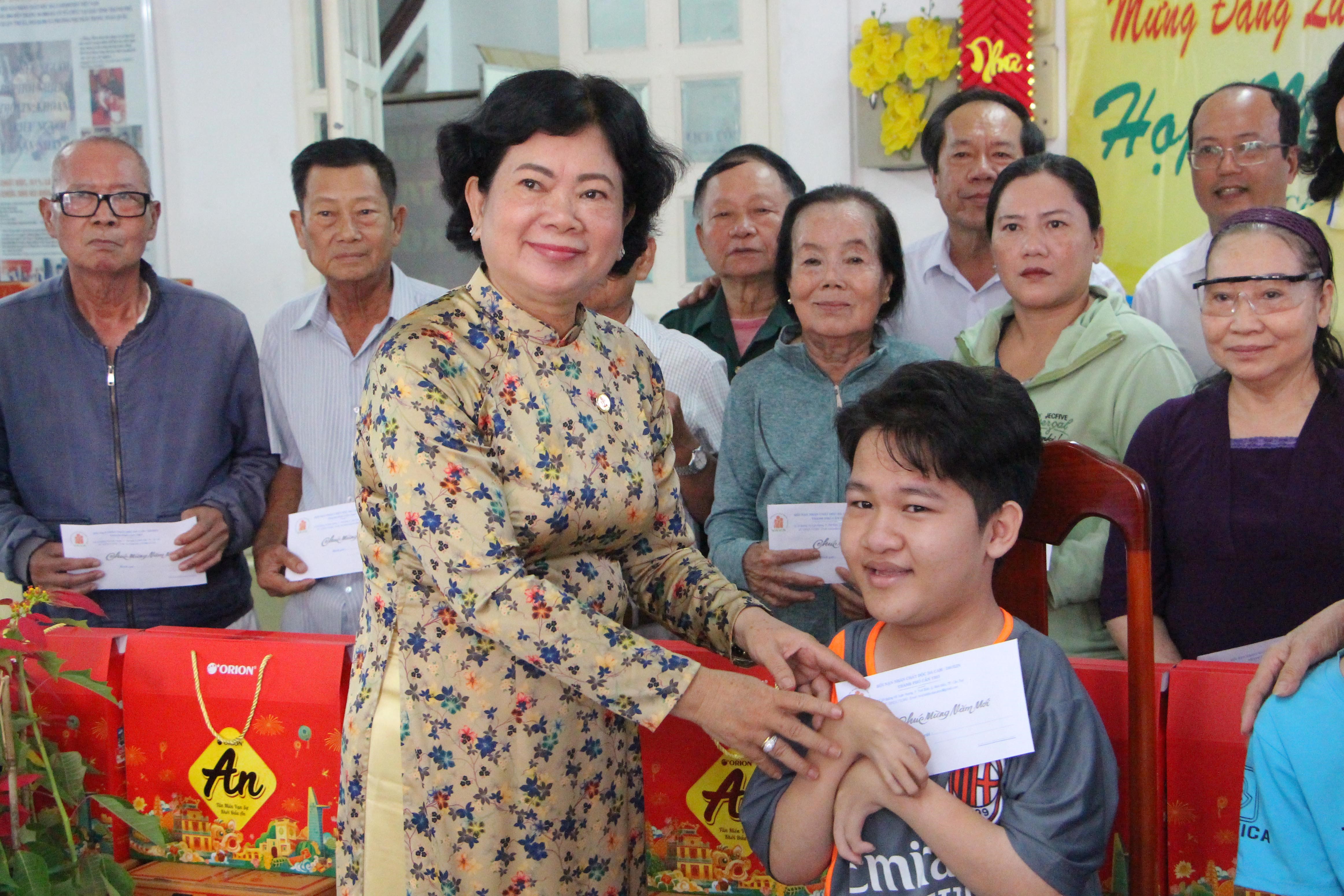 Bà Võ Thị Thanh Nga, Chủ tịch Thành hội Tặng quà cho nạn nhân chất độc da cam tại buổi họp mặt Xuân nghĩa tình