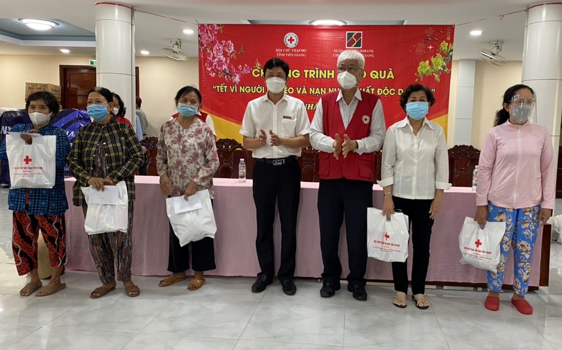 Sáng ngày 25/1, tại Nhà Văn hóa thành phố Mỹ Tho, Hội Chữ thập đỏ tỉnh Tiền Giang phối hợp cùng Ngân hàng Agribank Chi nhánh Tiền Giang, Hội Nạn nhân chất độc da cam/dioxin thành phố Mỹ Tho tổ chức Chương trình “Tết vì người nghèo và nạn nhân chất độc da cam Xuân Nhâm Dần 2022”.
