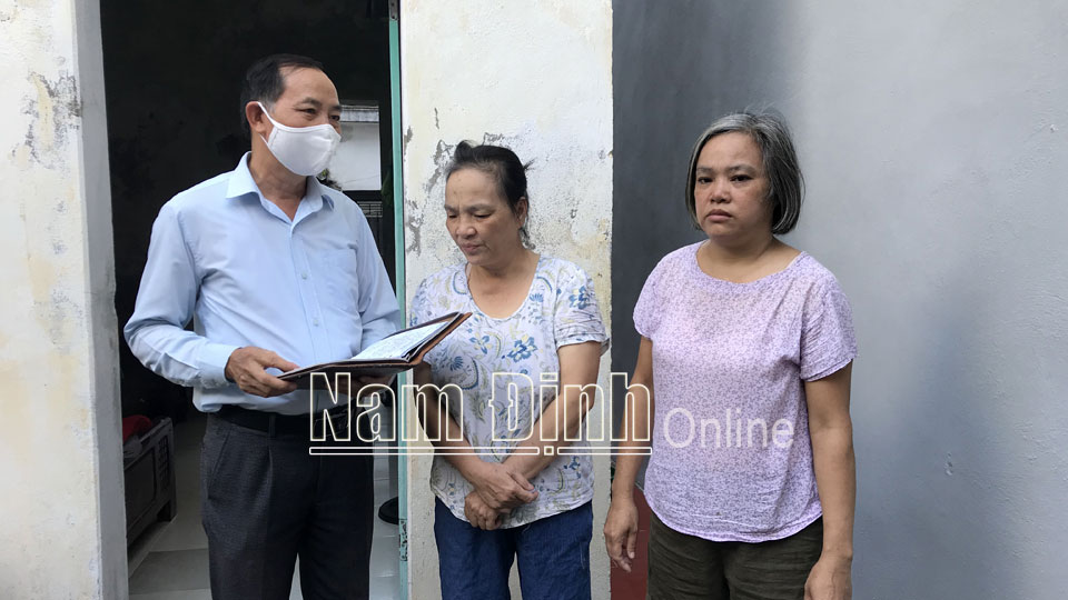 Ông Nguyễn Thanh Ba, Chủ tịch Hội NNCĐDC/dioxin thành phố Nam Định thăm gia đình nạn nhân chất độc da cam ở tổ 34, phường Trường Thi.