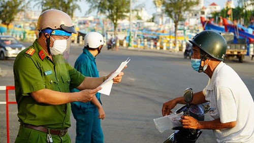 Lực lượng chức năng TP. Phan Thiết kiểm tra giấy tờ của người dân