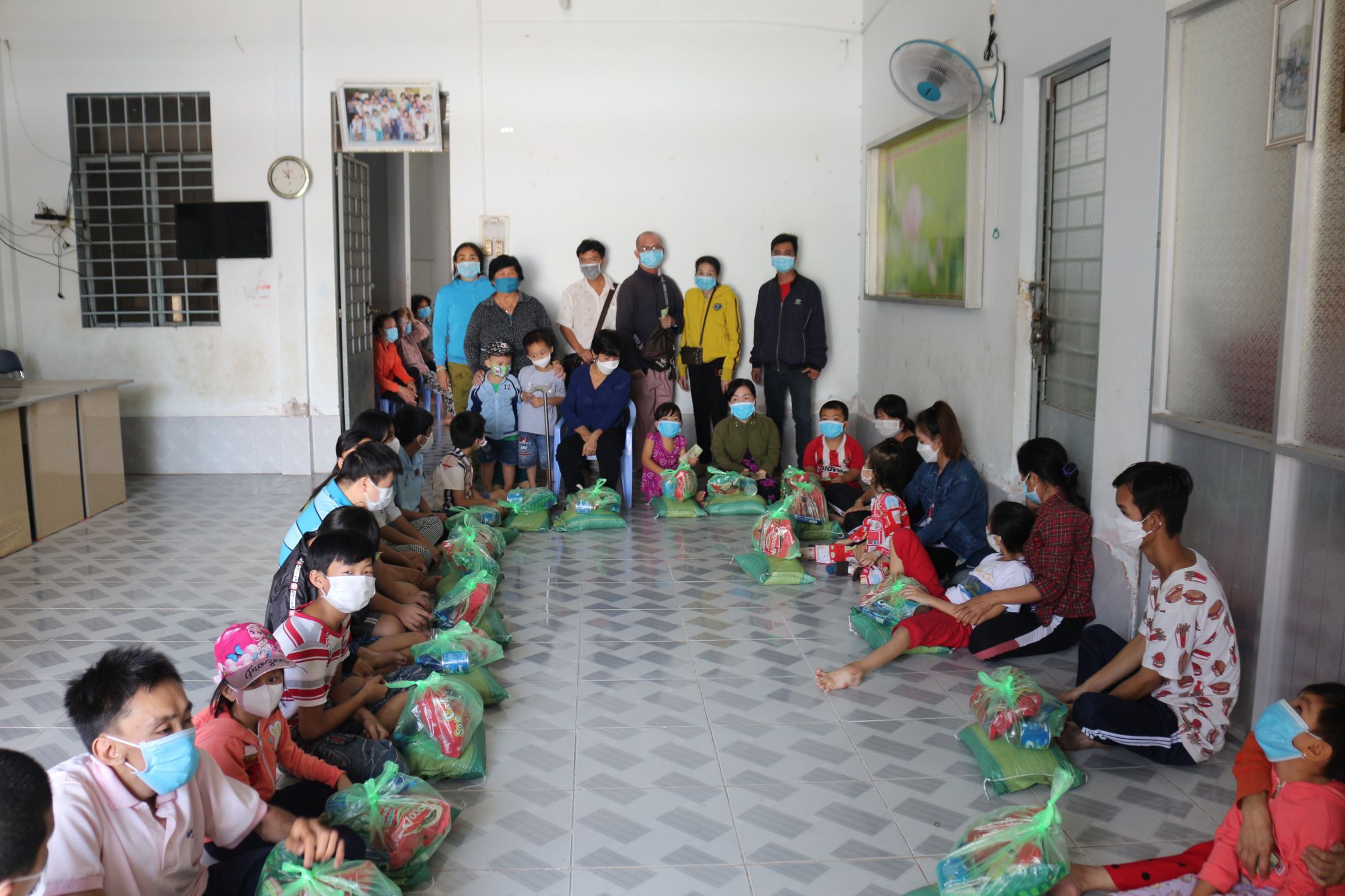 Thầy Thích Bảo Hòa cùng phật tử thành phố Mỹ Tho tặng quà cho trẻ em bị nhiễm chất độc da cam tại nhà nuôi dưỡng