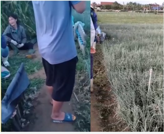 Được biết đây là ruộng hành của chị Thắm Sơn ở Quỳnh Lương, Quỳnh Lưu - Nghệ An nhưng canh tác ở xóm Học Văn - Quỳnh Bảng. Do quá xót xa vì bao nhiêu công sức chăm sóc ruộng hành bấy lâu nay giờ mất trắng, nên chị Thắm đã bật khóc.