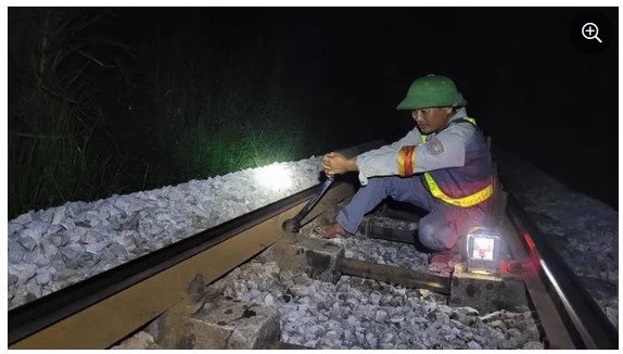 Dưới ánh đèn pin, đường ray và những bulon, ốc vít trên thanh tà vẹt được soi rõ trong đêm tối. Tiếng côn trùng kêu rả rích, thi thoảng những làn gió nhẹ thổi về từ dòng sông Ngàn Sâu như tiếp thêm niềm tin, động lực để anh Ngọc hoàn thành nhiệm vụ. Ca trực đêm nay, anh phải rảo bước từ 21 giờ 45 phút đến 4 giờ 20 phút sáng hôm sau, và cũng là ca trực vất vả nhất của người tuần tra đường sắt.