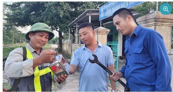 | Anh Lê Bảo Ngọc kiểm tra, sửa chữa nhỏ trong lúc đi tuần đường |
