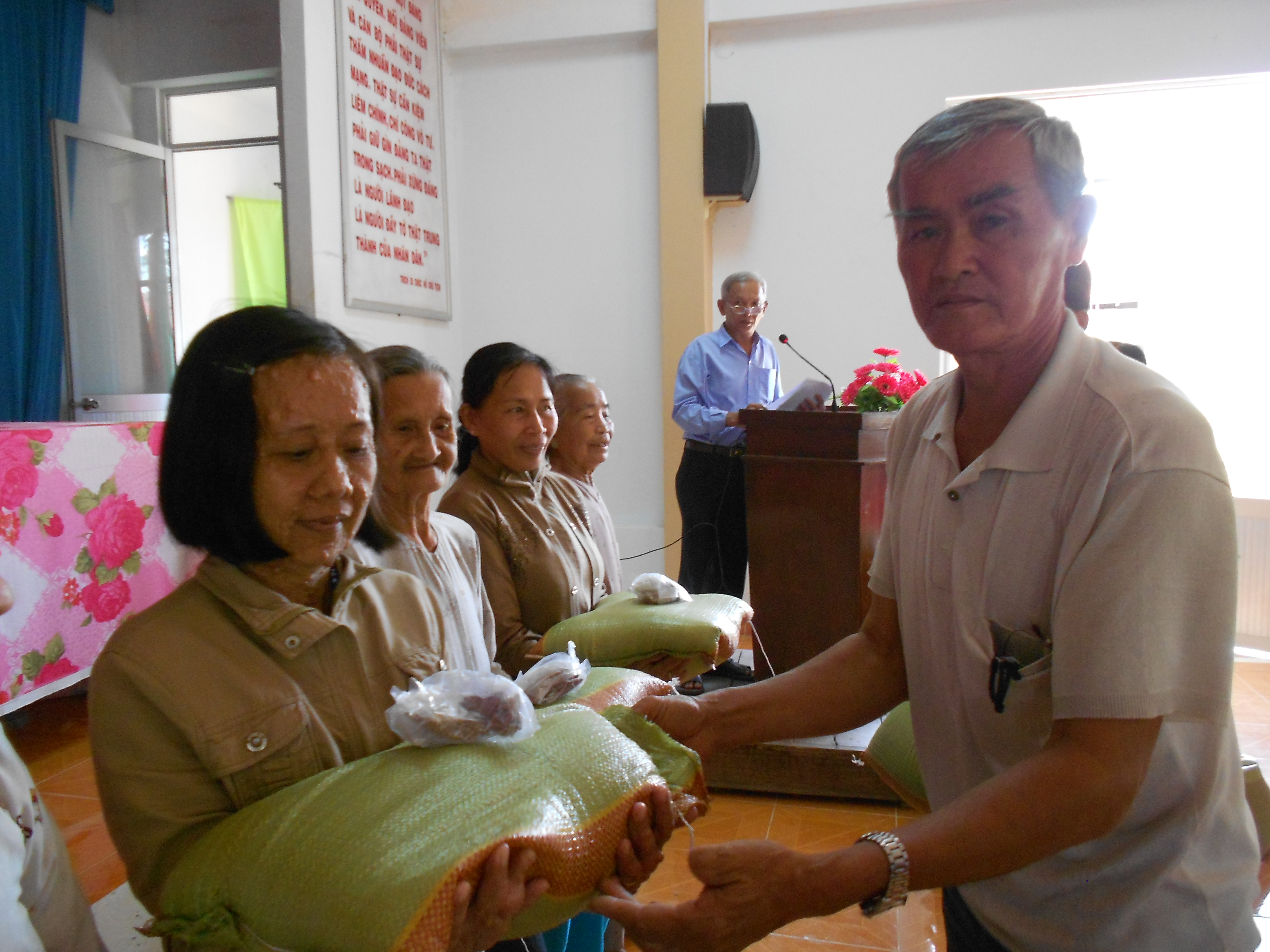 Tặng quà cho NNCĐDC xã Tân Hội