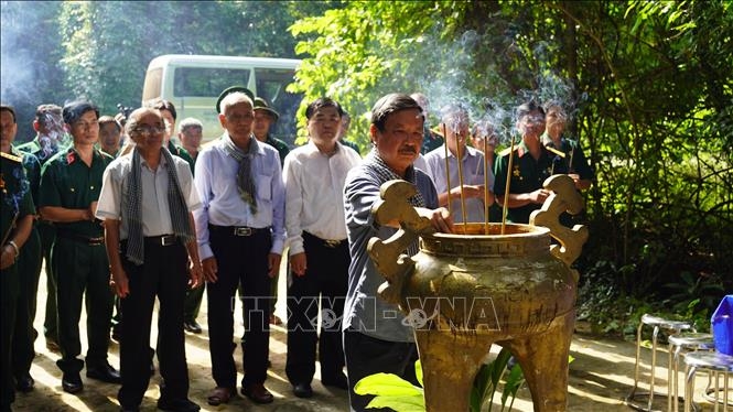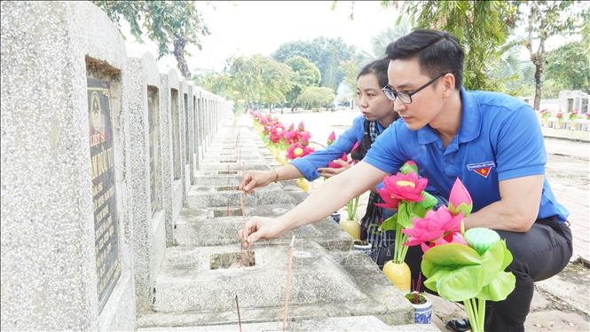 | Đoàn Thanh niên Cơ quan Thông tấn xã Việt Nam khu vực phía Nam dâng hương tại mộ liệt sỹ thuộc Nghĩa trang Liệt sỹ Đồi 82 (huyện Tân Biên, tỉnh Tây Ninh). |