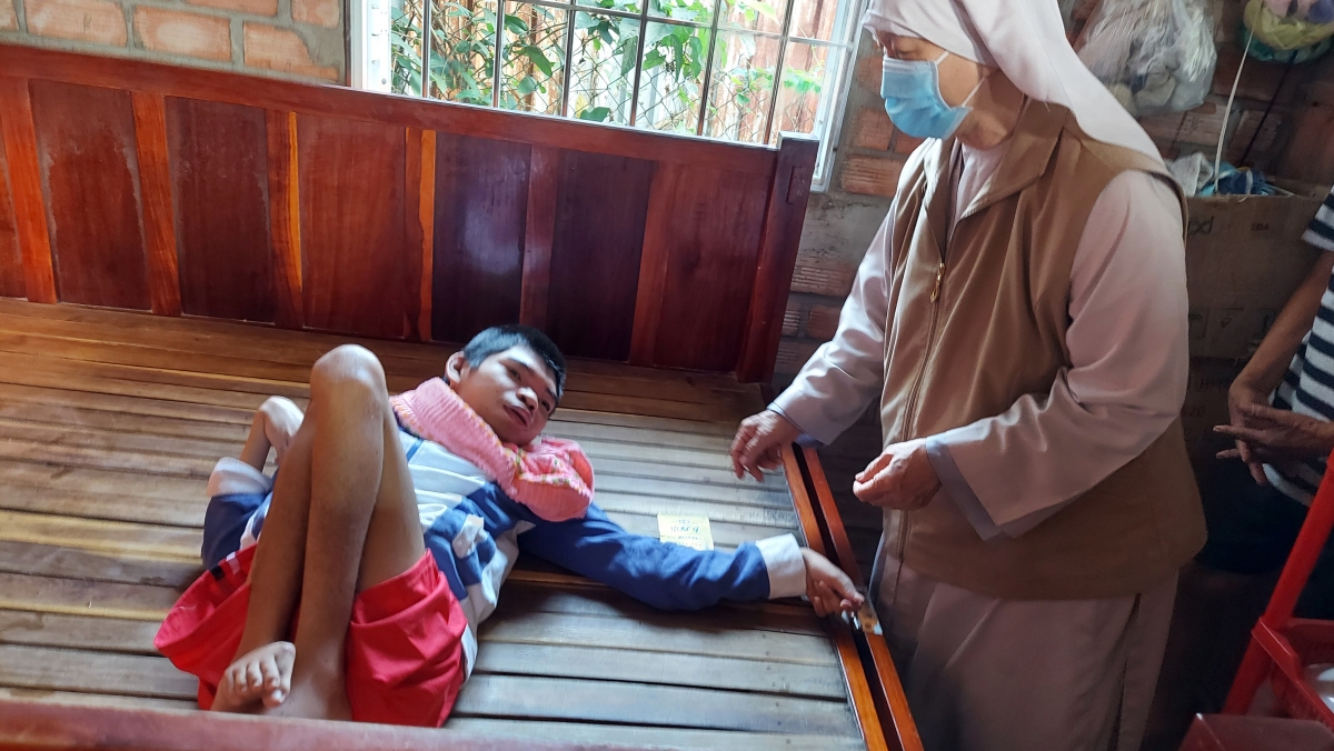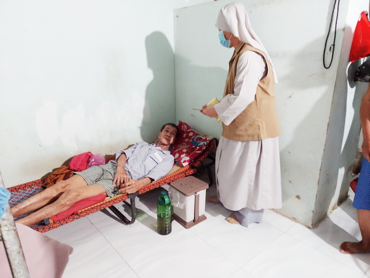 | Ni Sư Bảo Tâm trao quà cho bệnh nhân hiểm nghèo |