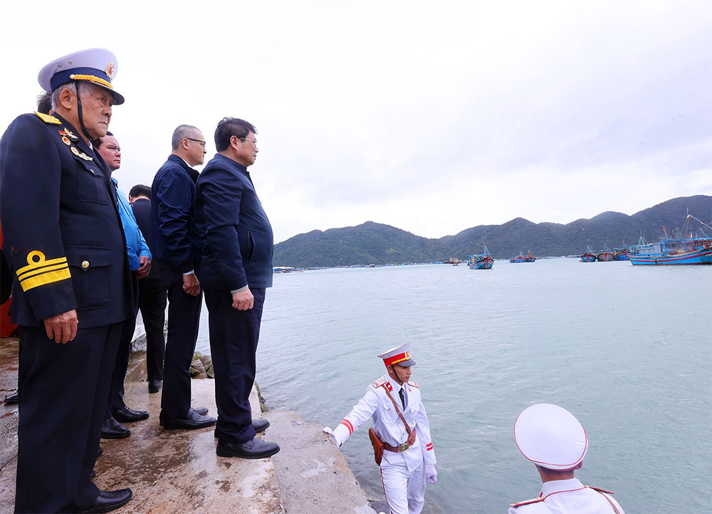| Thủ tướng Chính phủ Phạm Minh Chính thả vòng hoa tưởng niệm các anh hùng liệt sĩ tại Di tích lịch sử Bến tàu Không số Vũng Rô. Ảnh: Dương Giang |