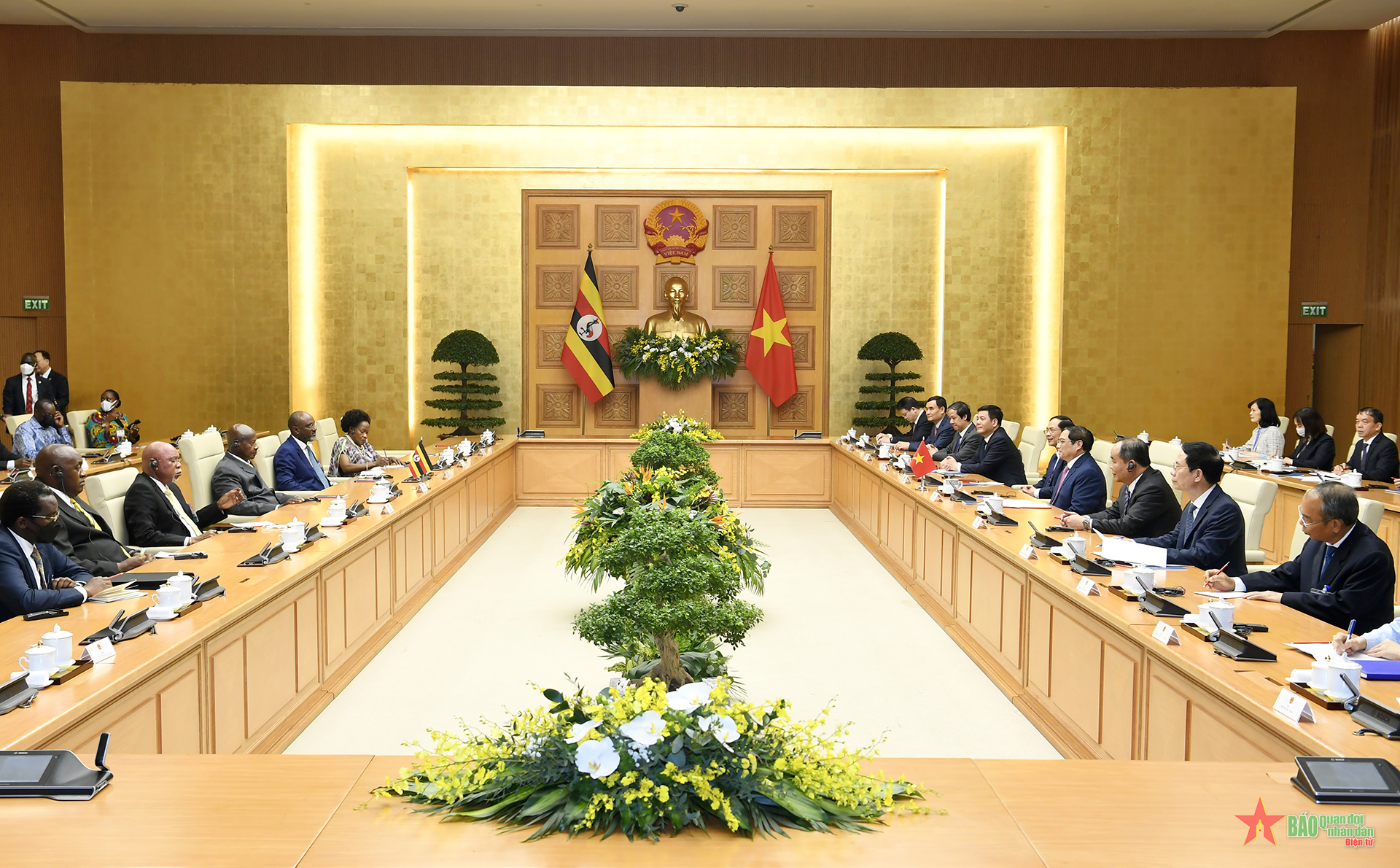 Thủ tướng tin tưởng với sự ủng hộ và ý chí quyết tâm của lãnh đạo và nhân dân hai nước, quan hệ Việt Nam - Uganda sẽ đạt được những kết quả tích cực, thực chất trong thời gian tới. Thủ tướng khẳng định tầm quan trọng của việc tăng cường hiểu biết và tin cậy chính trị thông qua thúc đẩy trao đổi đoàn, tiếp xúc, nhất là cấp cao; tích cực ủng hộ lẫn nhau tại các diễn đàn đa phương, đặc biệt khi Uganda đảm nhận vai trò Chủ tịch Phong trào Không liên kết nhiệm kỳ 2023-2026.