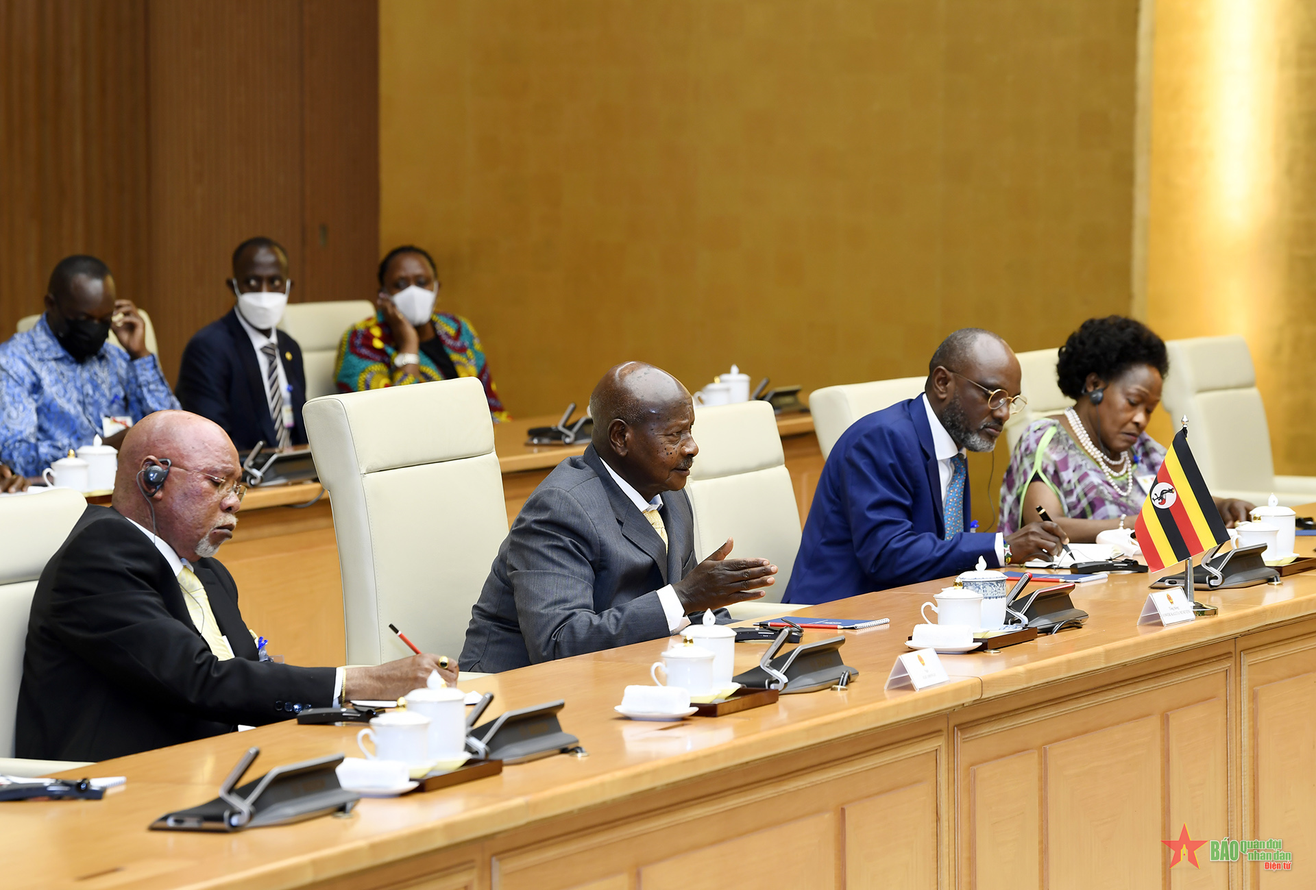 Tổng thống khẳng định Uganda luôn coi trọng quan hệ hữu nghị tốt đẹp với Việt Nam; nhất trí cao với những định hướng thúc đẩy hợp tác của Thủ tướng Phạm Minh Chính, trong đó thúc đẩy hợp tác thương mại, đầu tư và nông nghiệp sẽ là trọng tâm.