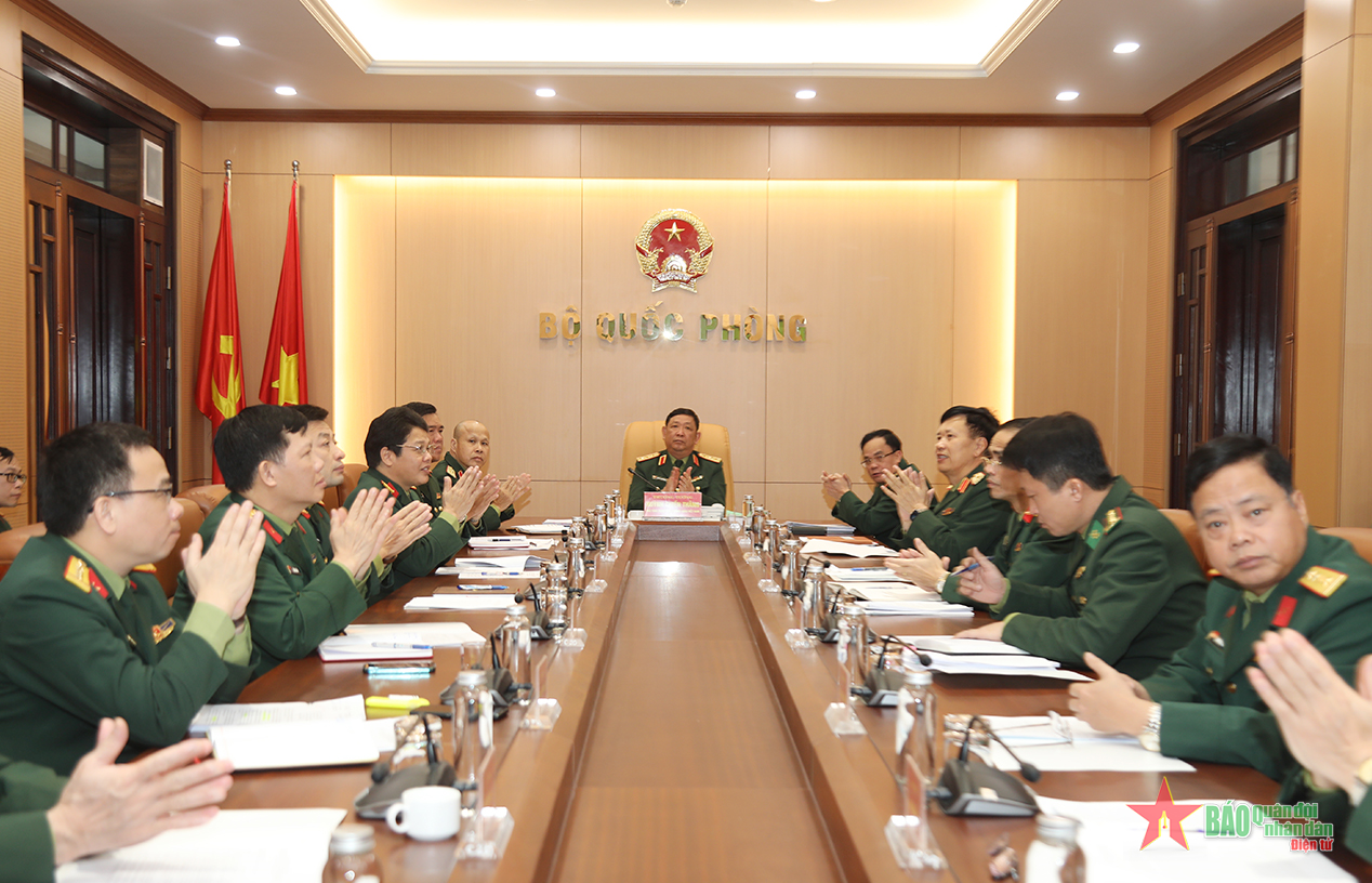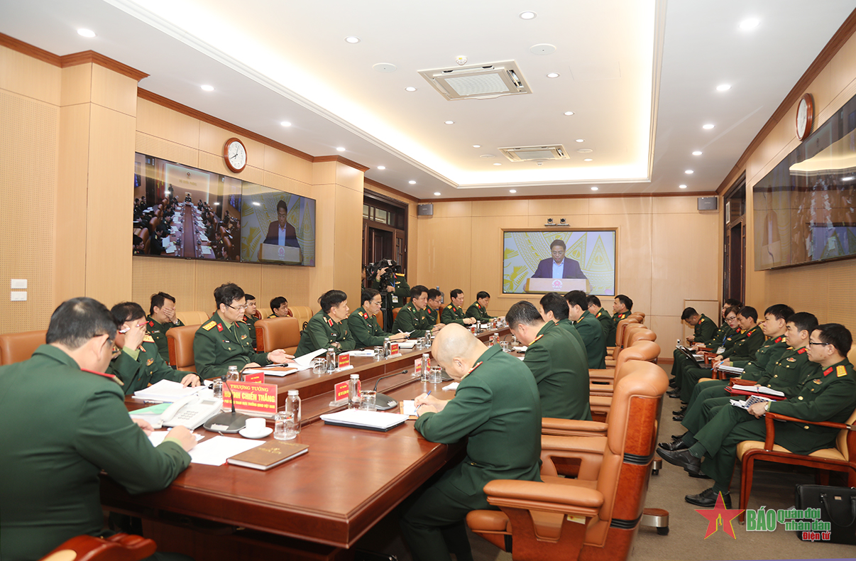 | Thượng tướng Huỳnh Chiến Thắng chủ trì phiên họp tại điểm cầu Bộ Quốc phòng. |