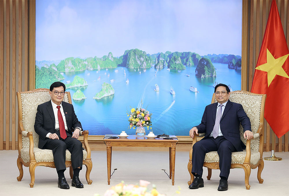 Phó thủ tướng Heng Swee Keat chuyển lời của Thủ tướng Lý Hiển Long thăm hỏi và mời Thủ tướng Chính phủ Phạm Minh Chính sớm thăm chính thức Singapore; cho biết Thủ tướng Lý Hiển Long mong muốn thăm Việt Nam năm 2023 nhân kỷ niệm 50 năm thiết lập quan hệ ngoại giao và 10 năm lập quan hệ Đối tác Chiến lược giữa hai nước; cảm ơn sự đón tiếp nồng hậu của Chính phủ Việt Nam dành cho đoàn; nhấn mạnh Việt Nam là đối tác kinh tế quan trọng của Singapore ở khu vực.