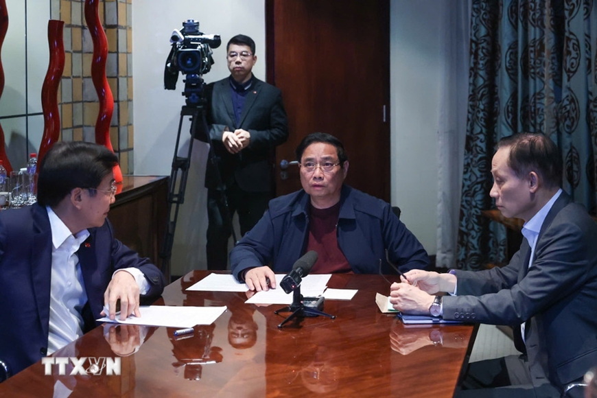 Thủ tướng Phạm Minh Chính chủ trì họp trực tuyến từ Nam Phi, chỉ đạo khắc phục hậu quả mưa lũ.