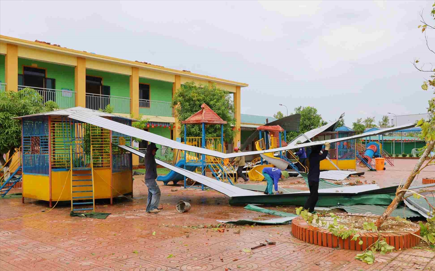 Các đơn vị trường học trên địa bàn xã Hưng Nguyên (tỉnh Nghệ An) khắc phục thiệt hại sau bão số 5.