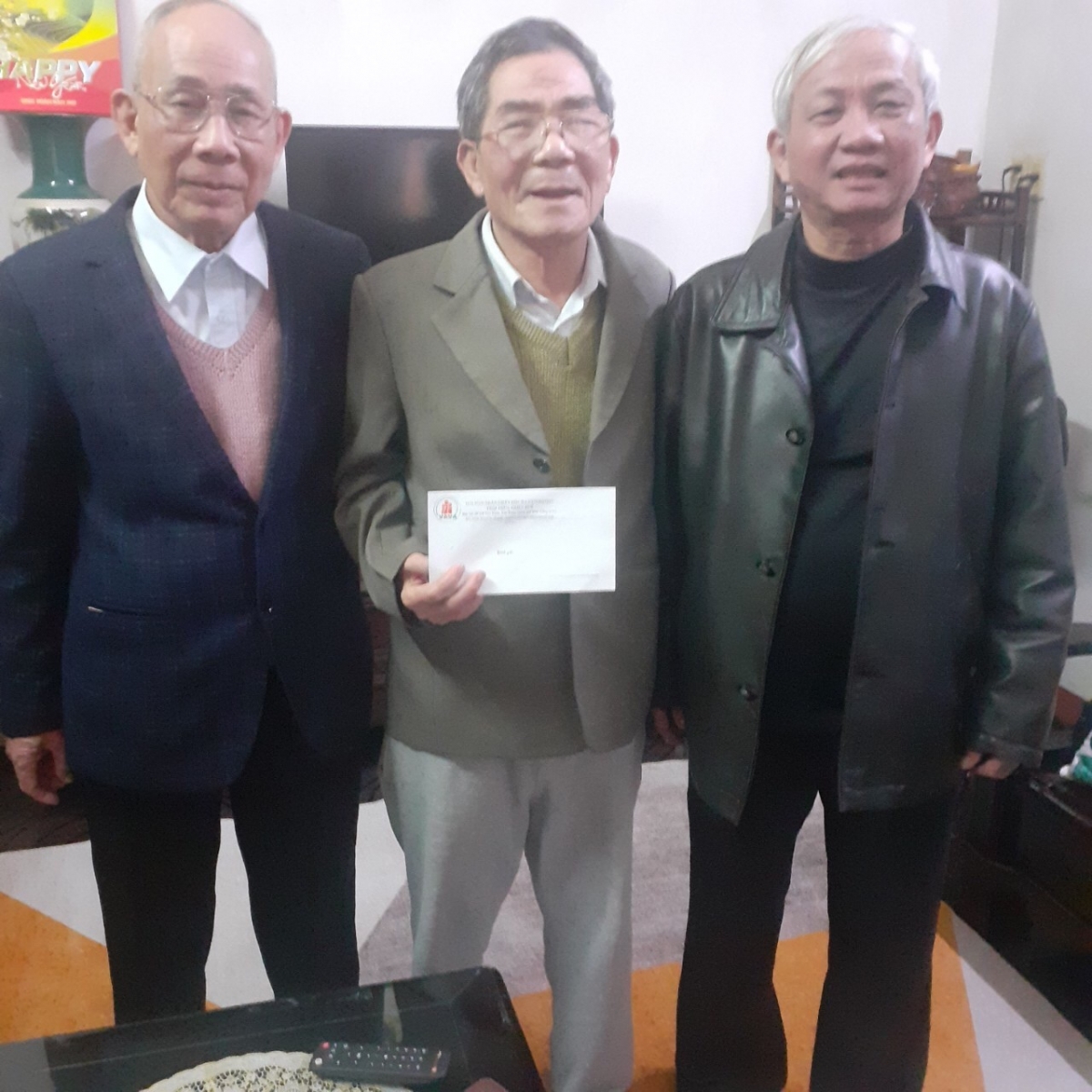 | Ông Nguyễn Ngọc Chung, Chủ tịch Tỉnh hội (bên trái) trao quà cho nạn nhân chất độc da cam Nguyễn Trọng Hoành (đứng giữa) |