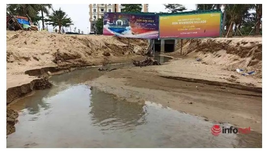 Cống xả nước ra môi trường biển tại bãi D, theo lãnh đạo TP Sầm Sơn, là hệ thống thoát nước mưa của tuyến đường Hồ Xuân Hương và Quảng trường biển, không phải nước thải sinh hoạt.