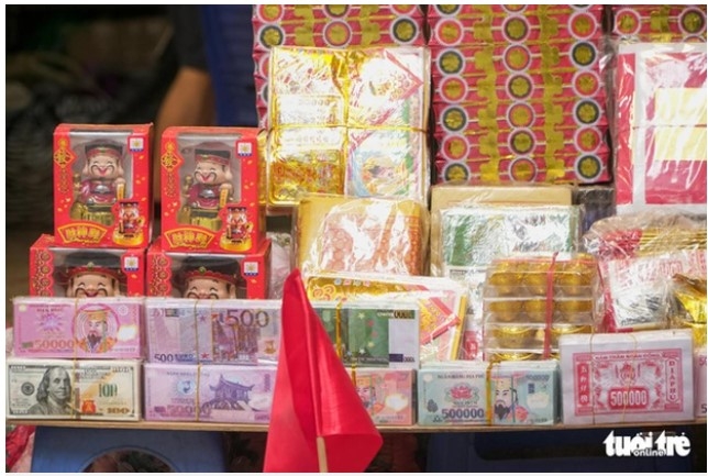Ngoài tiền vàng mã, hiện các sản phẩm ví, tiền đồ chơi in hình tờ tiền VNĐ cũng được bày bán đầy rẫy trên mạng và các sàn thương mại điện tử.