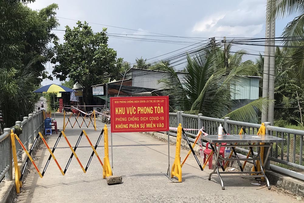 Khu vực phong tỏa ở thị xã Cai Lậy (Tiền Giang) do có ca mắc Covid-19. Ảnh: VietNamnet