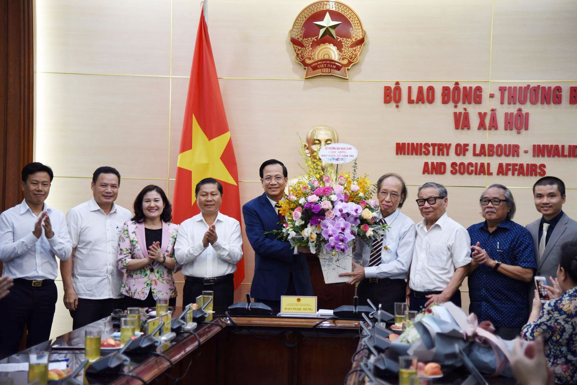 Thực hiện quyết định chuyển đổi báo điện tử Dân trí từ Trung ương Hội Khuyến học Việt Nam về trực thuộc Bộ Lao động - Thương binh và Xã hội theo giấy phép hoạt động số 298/GP-BTTTT ngày 14/7/2020 do Bộ trưởng Bộ Thông tin – Truyền thông ký ban hành, chiều 15/7, tại Trụ sở Bộ, Bộ LĐ-TBXH tổ chức việc tiếp nhận và kiện toàn nhân sự của báo Dân trí. Bộ trưởng Đào Ngọc Dung chủ trì buổi lễ.