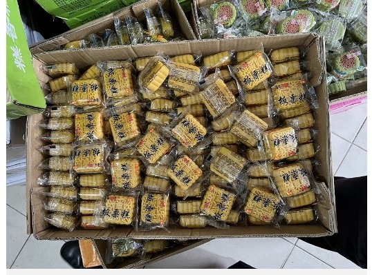 Hộ kinh doanh Phan Thị Nhàn tại xóm Chùa Tổng, xã La Phù (Hoài Đức) bày bán công khai 5.100 chiếc bánh trung thu có nhãn hiệu nước ngoài, không rõ nguồn gốc xuất xứ.